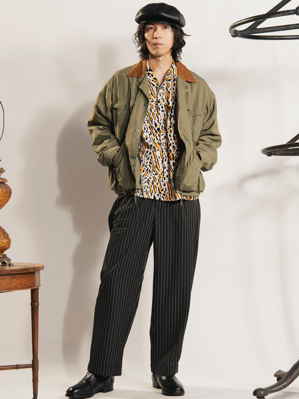 50sスタイルのような雰囲気が魅力的なヒョウ柄シャツ。すっきりとした開襟スタイルで古着との相性とも良く、コーデの主役としても、ちょっとした軽いアウターとしても活躍します。