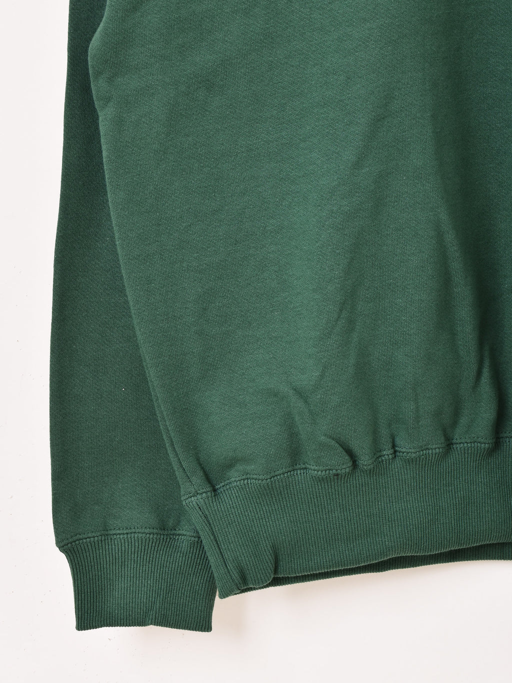 りんごのワンポイント刺繍が目を惹くスウェットシャツ。裏起毛はなく、程よい厚みでオールシーズン活躍します。