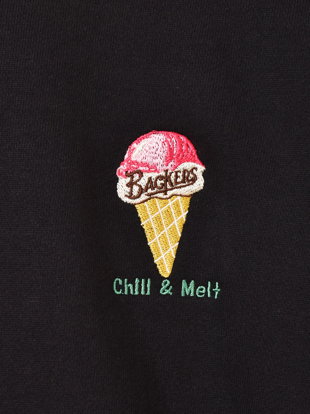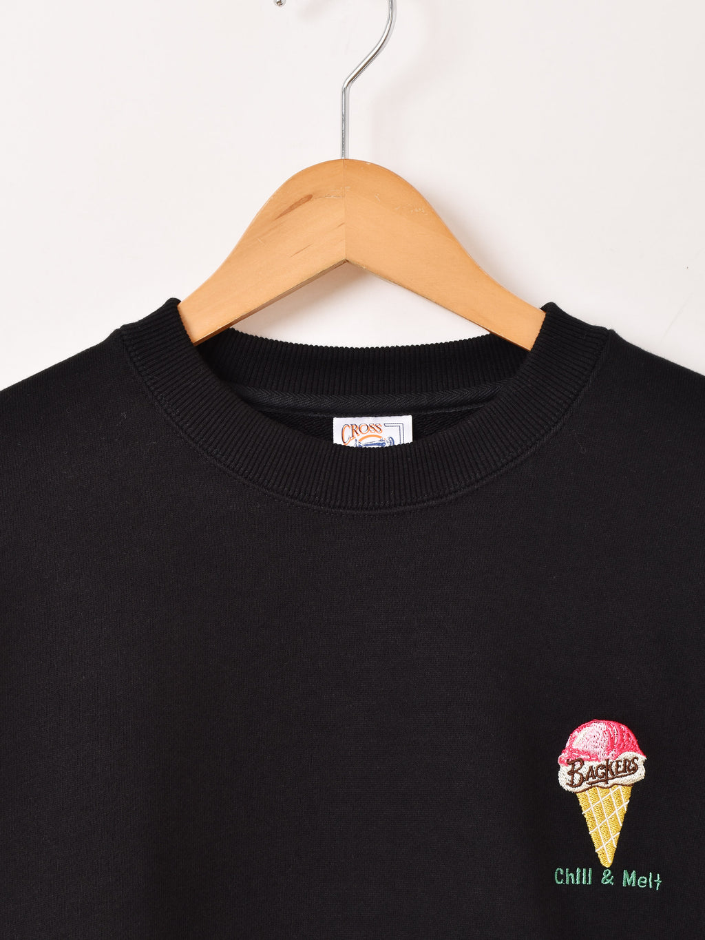 おしゃれなアイスクリームのロゴ刺繍が目を惹くスウェットシャツ。裏起毛はなく、程よい厚みでオールシーズン活躍します。