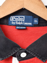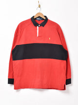 二色でシンプルなラルフローレンのラグビーシャツ。肩、肘は2重で布があてられています。かなりしっかりとした生地感です。