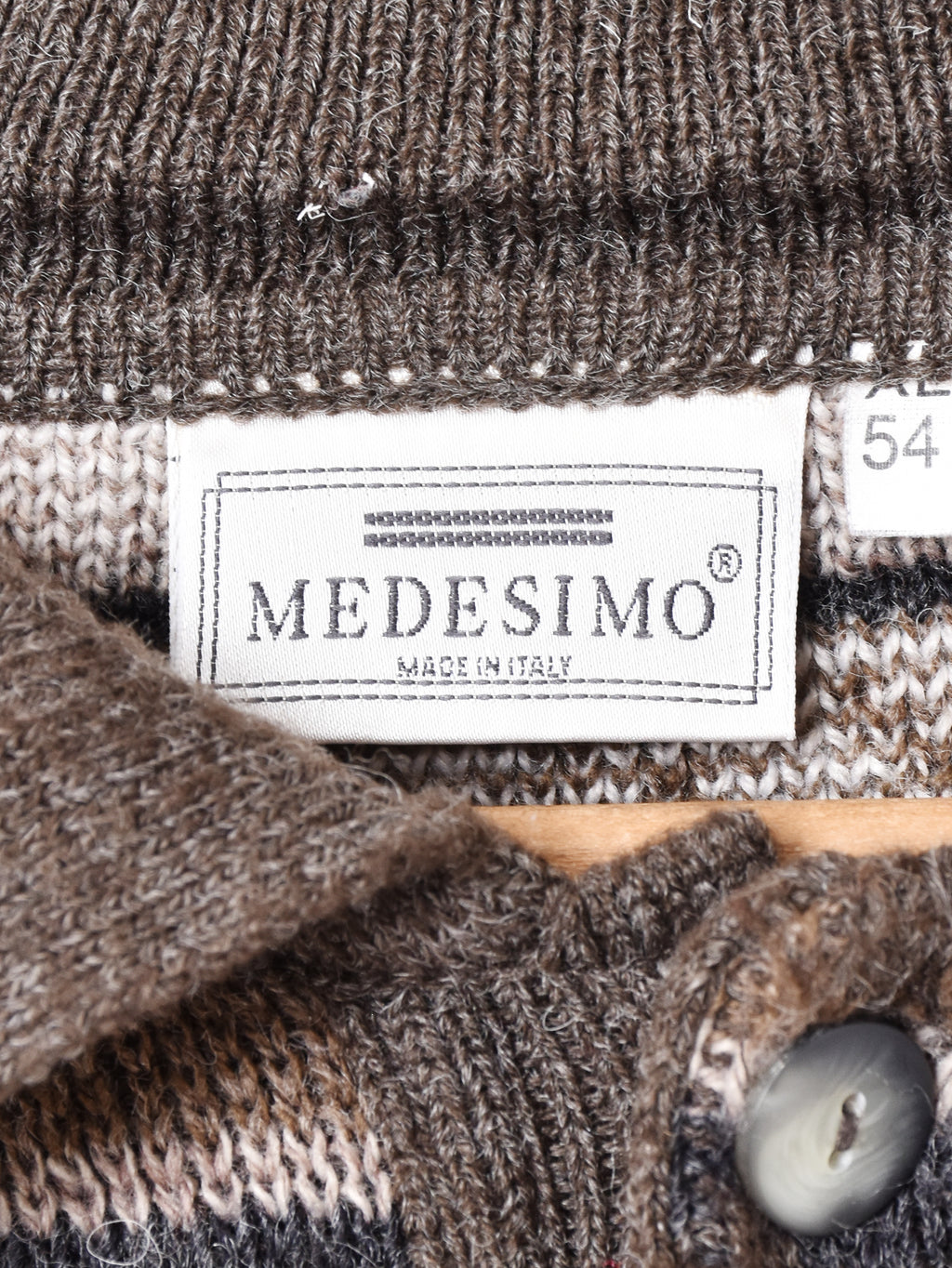 様々な柄がボーダーになっているデザインニット。おそらくウール素材で程よい厚みの滑かな質感。着心地抜群です。