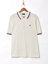 アイボリーのボディにラインのデザインが爽やかなフレッドペリーのワンポイントポロシャツ。柔らかいカノコ生地で涼しげな一着です。