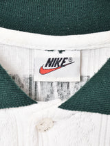 ロゴをあしらった大胆なデザインが目を惹くナイキのポロシャツ。スポーティーな雰囲気が◎。おそらくポリエステル素材のからっとした生地感です。