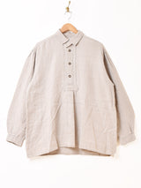 シンプルながらもリネン生地の風合いが雰囲気のよいチロリアンシャツ。プルオーバータイプでざっくりと着れるサイズ感も魅力的です。