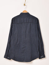 カスリのようなニュアンスのダークカラーストライプがシックなボタンダウンシャツ。やや透け感のある薄手の軽いコットンポリ生地です。