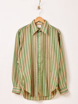 おそらく70年代頃のものと思われるガントのストライプシャツ。くすんだ色味のマルチストライプがヴィンテージらしい良い雰囲気を醸し出しており、前を開けて羽織るだけで様になりそうな一着です。コットンかコットンポリと思われる軽く柔らかな生地感です。