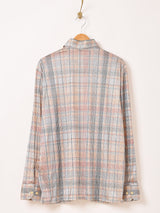 光沢のあるナイロン生地にグラデーションの格子柄が目を惹くデーモンの柄シャツ。コーディネートのアクセントに人と差が付く一着です。やや透け感のあるつるりとした生地です。