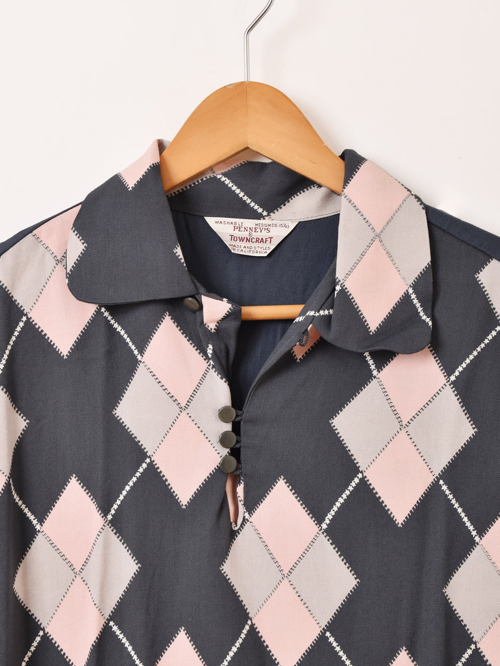 50〜60's アメリカ製 "PENNEY'S TOWN CRAFT" アーガイル 半袖 ポロシャツ