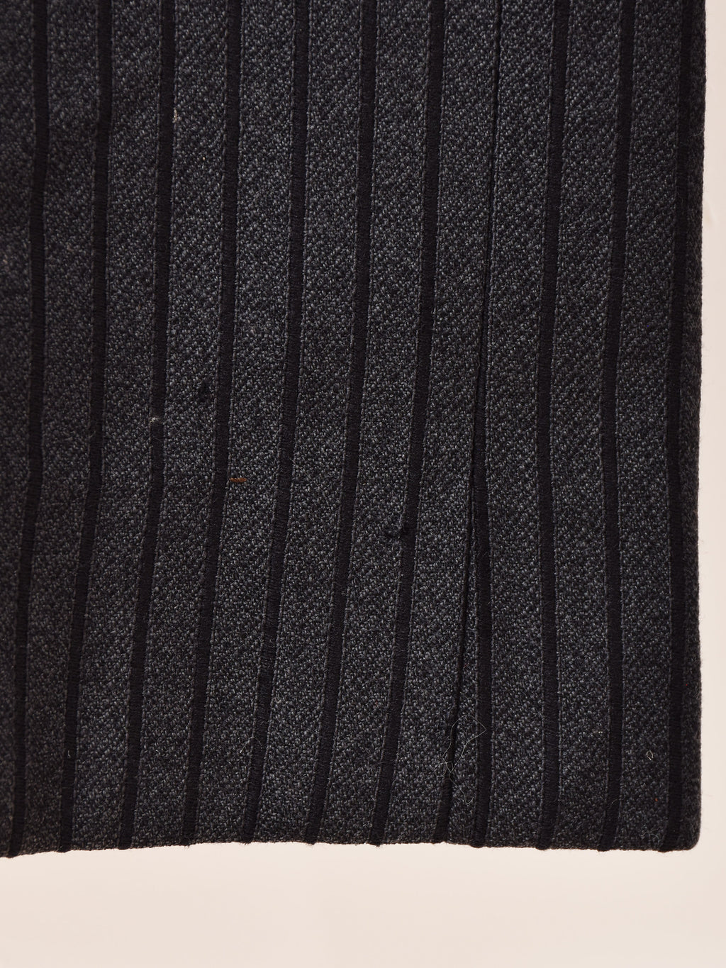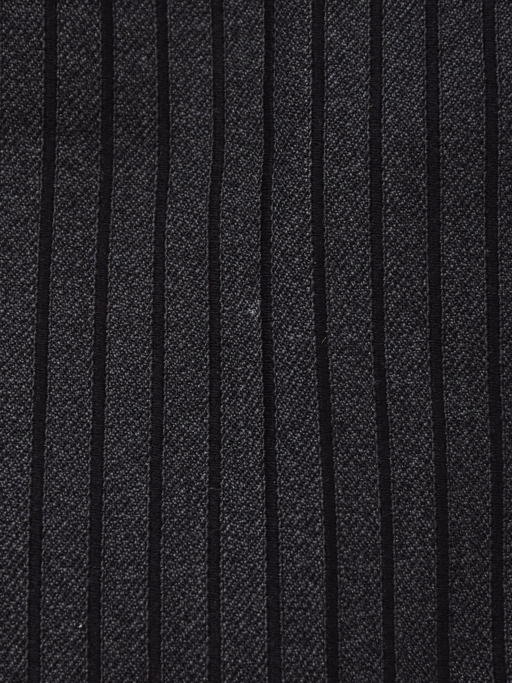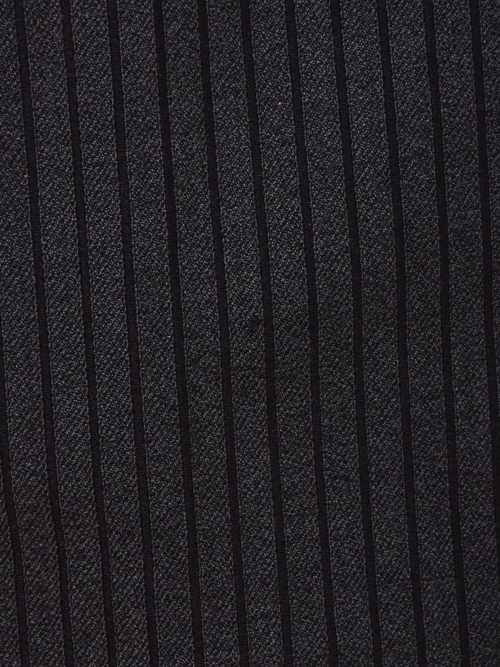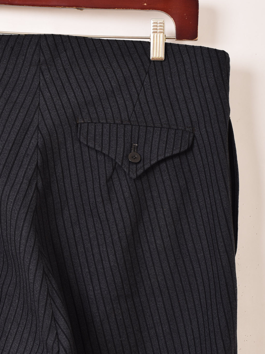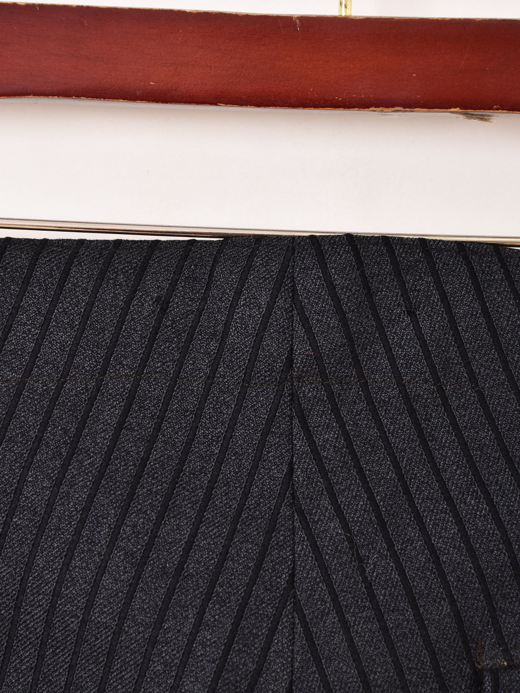 シンプルなブラックストライプが上品な雰囲気のトラウザーパンツ。センタープレス入りに、ストンと落ちる細身のストレートシルエットが魅力的な一着です。