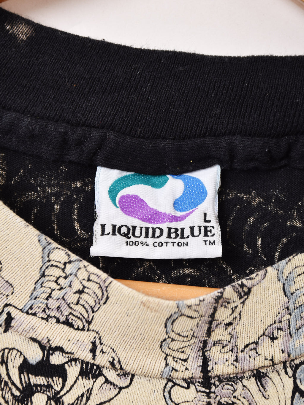 1987年に創業し、タイダイ染めや独創的なデザインを生み出してきたLIQUID BLUE(リキッドブルー)のプリントTシャツ。
