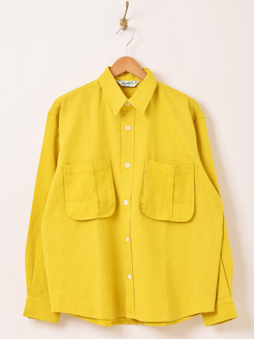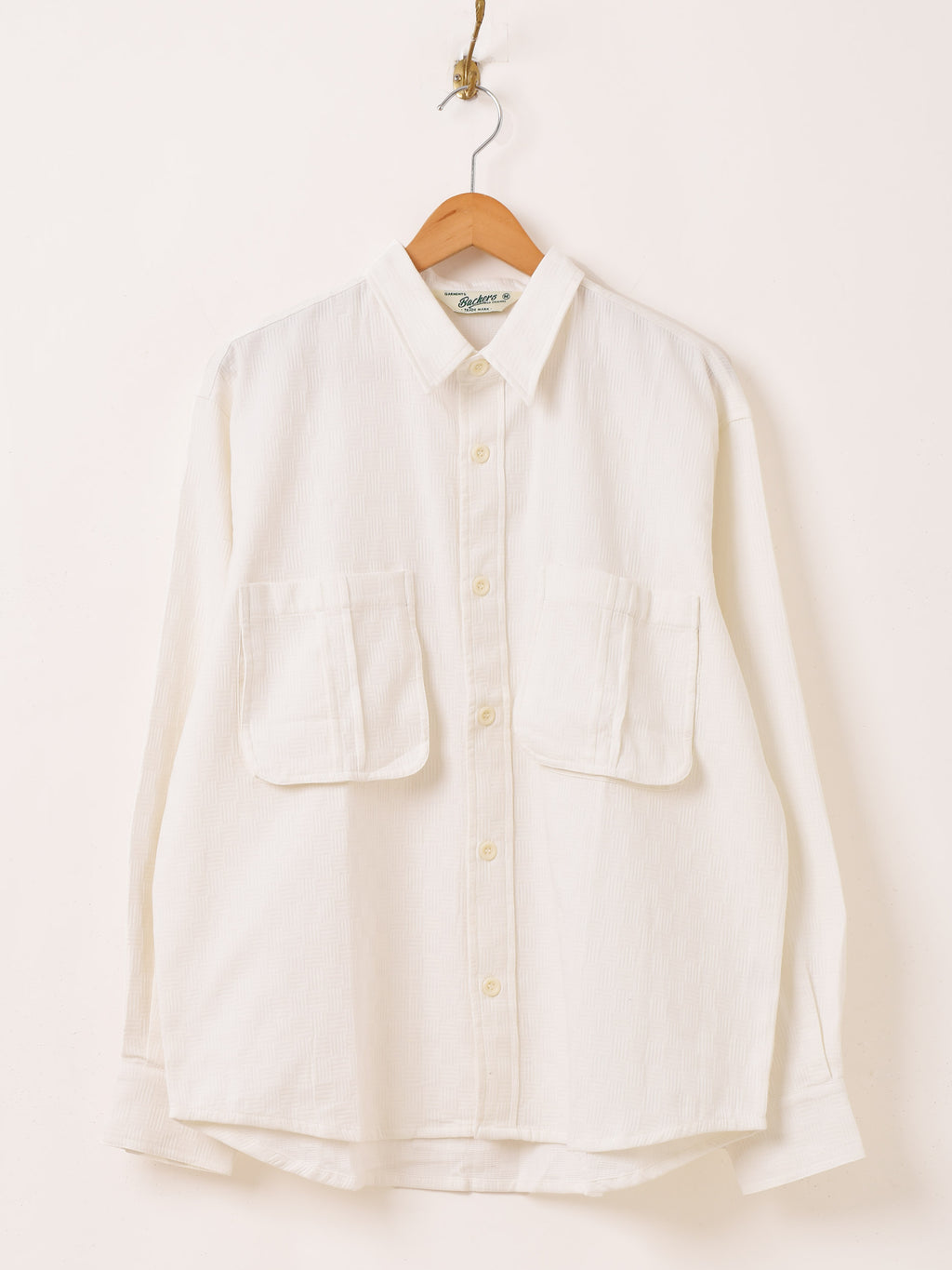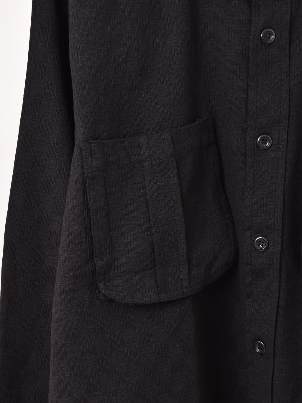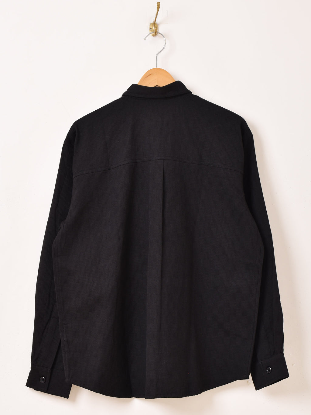 織柄のブロックチェック生地の長袖シャツ。フロントの2ポケットがポイント。程よい厚みのコットン生地で仕立てており、ちょっとした軽い羽織としてもおすすめです。