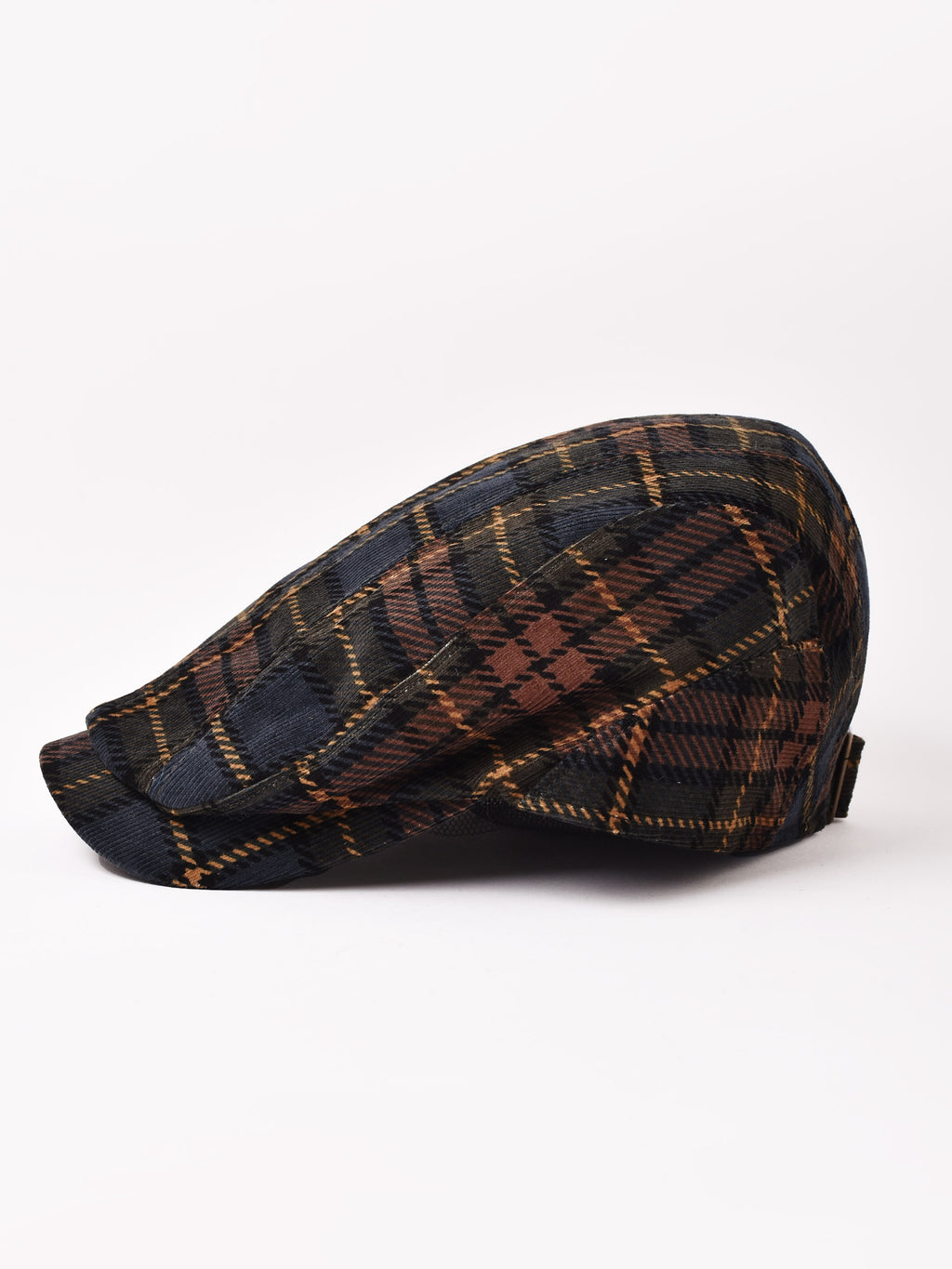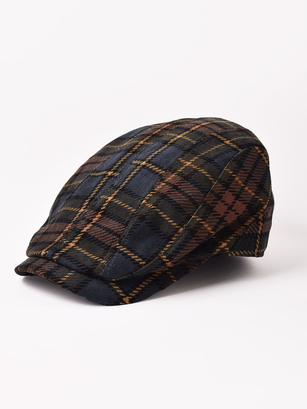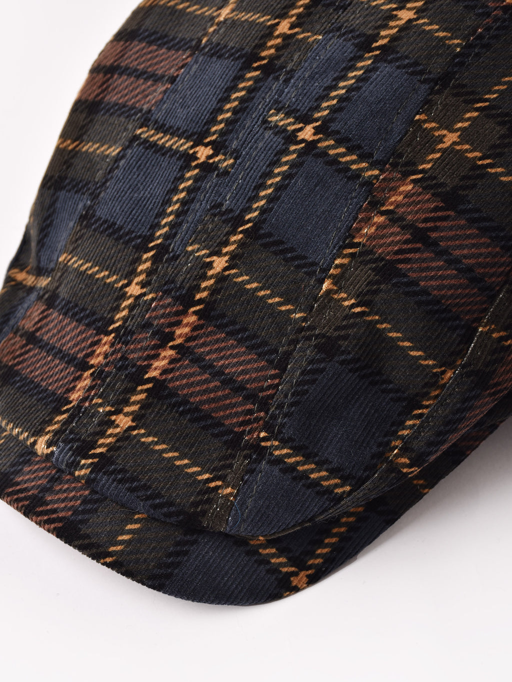 秋冬らしいテキスタイルを使用したアソートのハンチング。こちらは細畝コーデュロイ生地で仕立てた、クラシカルなチェック柄の一点です。
