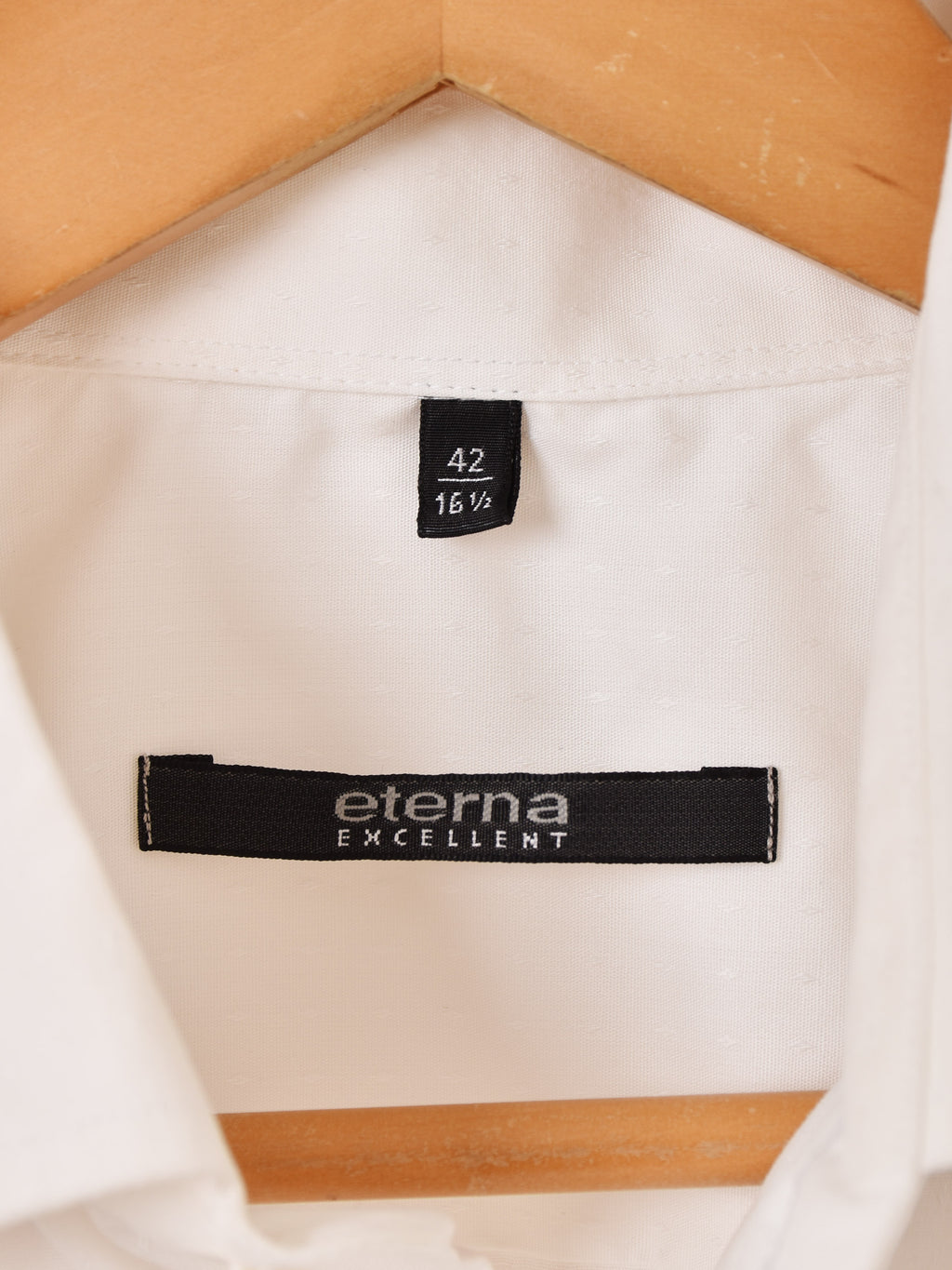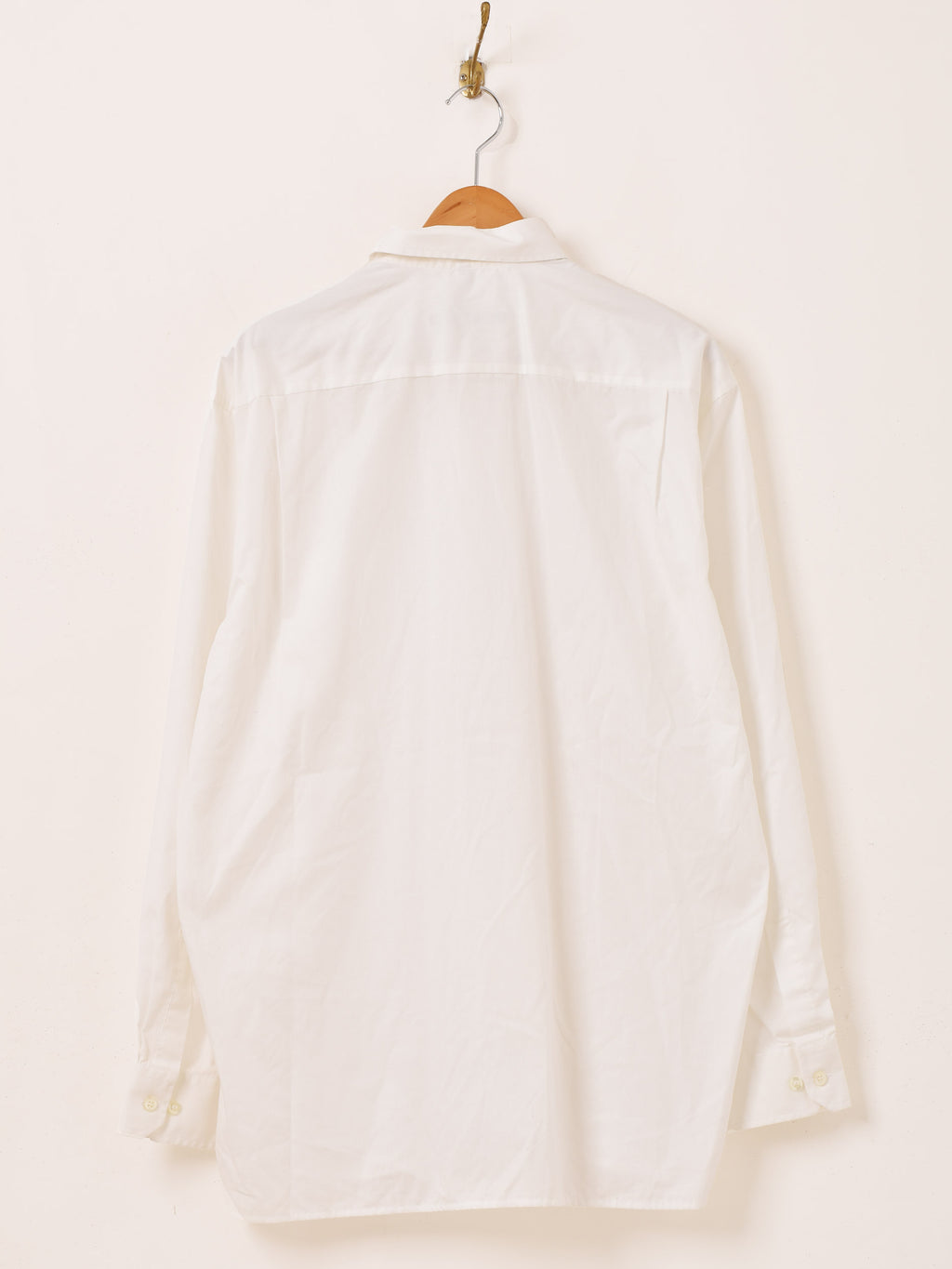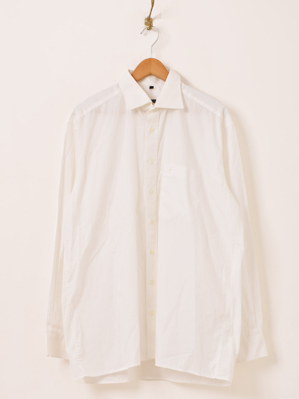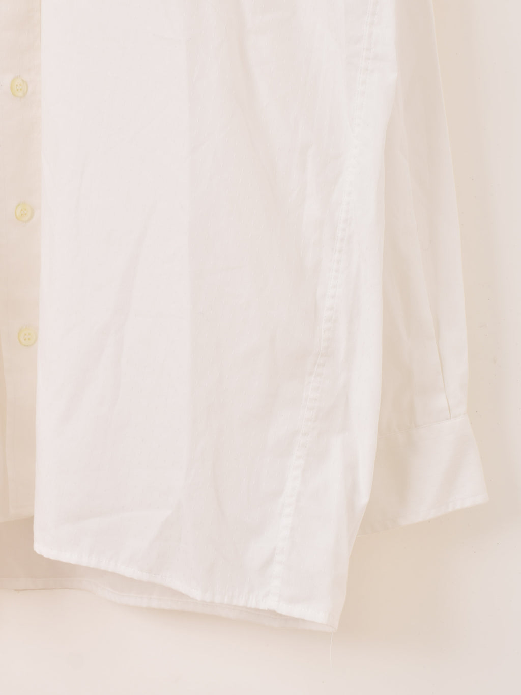 シンプルなホワイトの長袖シャツ。様々なシーンで着回せます。