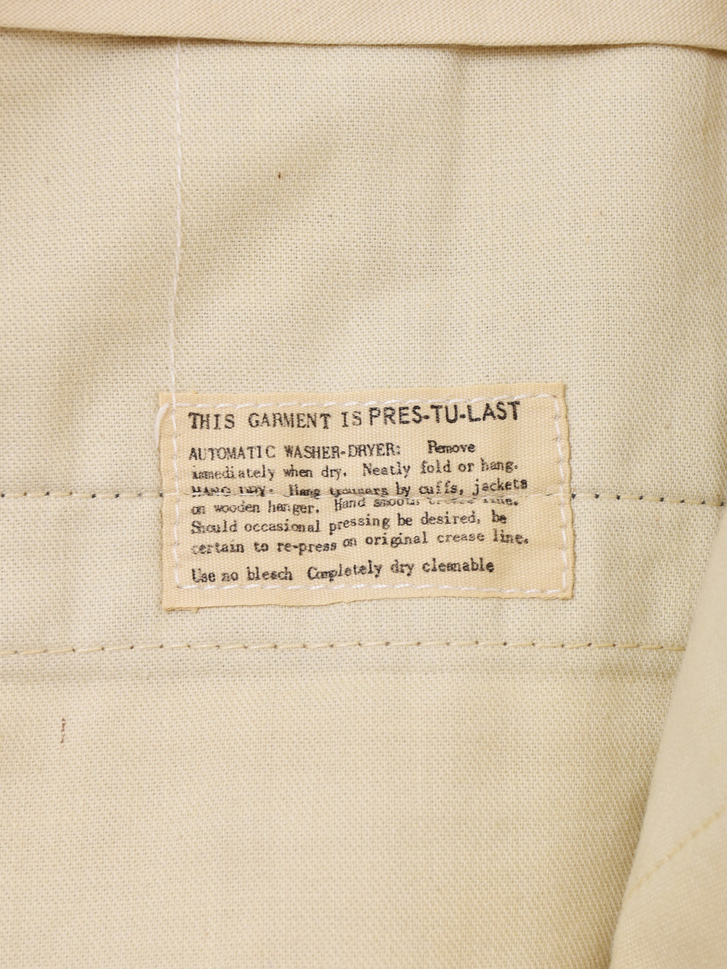 ラインデザインのトラウザーパンツ。落ち着きのあるくすみカラーが魅力的な一着です。「42」TALONジップを使用していることから60年から80年代頃に生産されたものと思われます。
