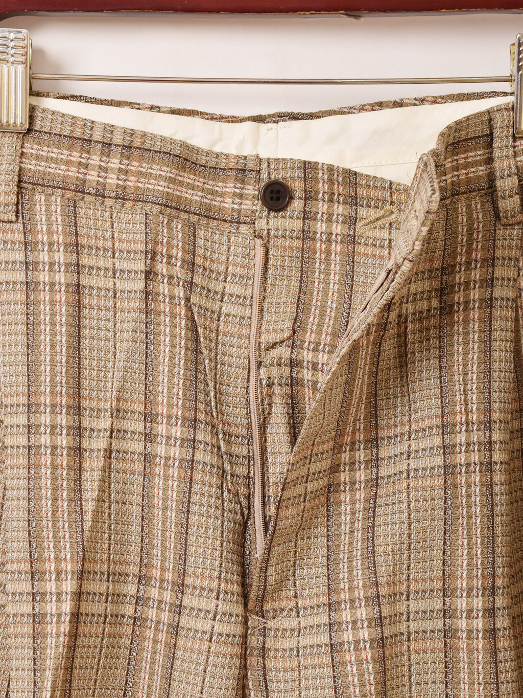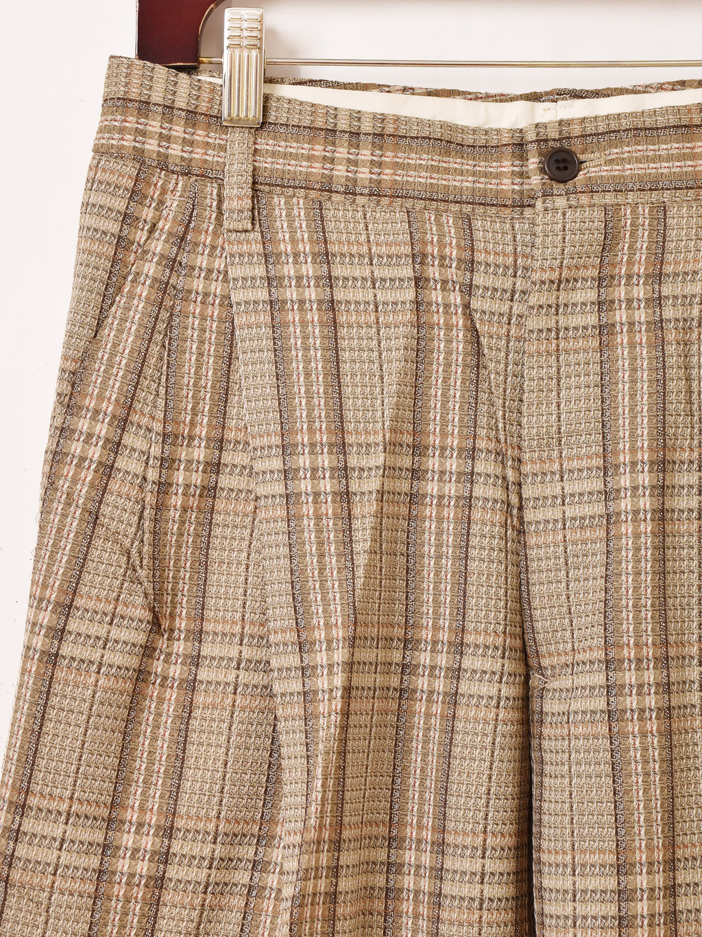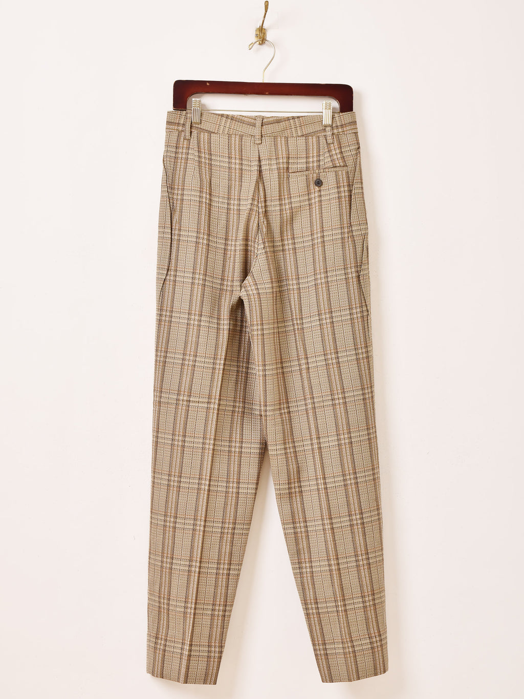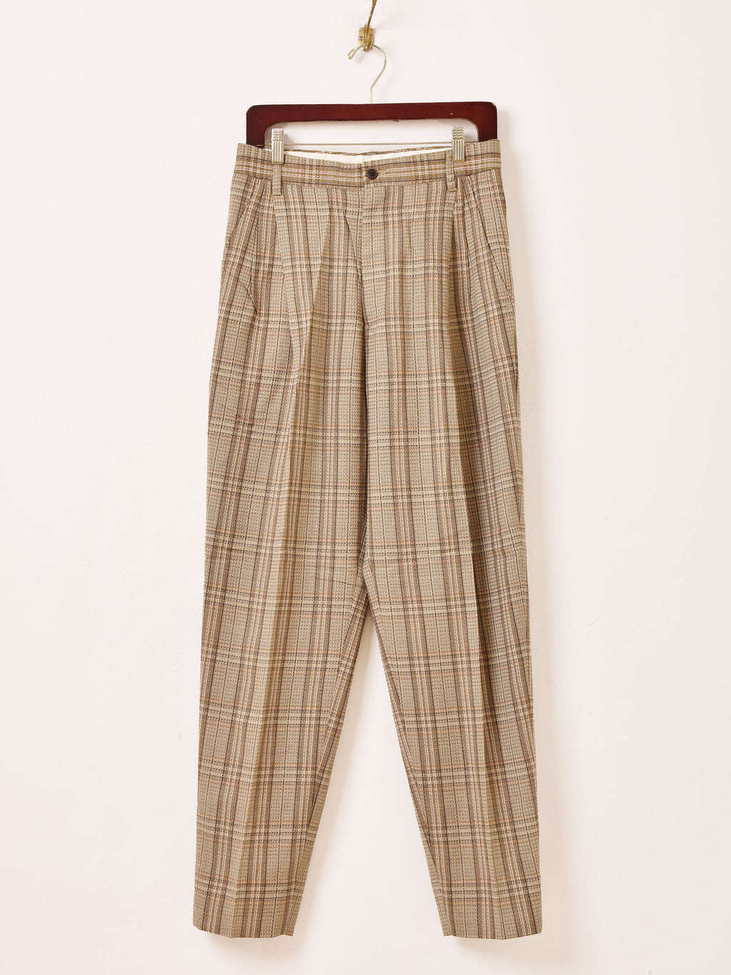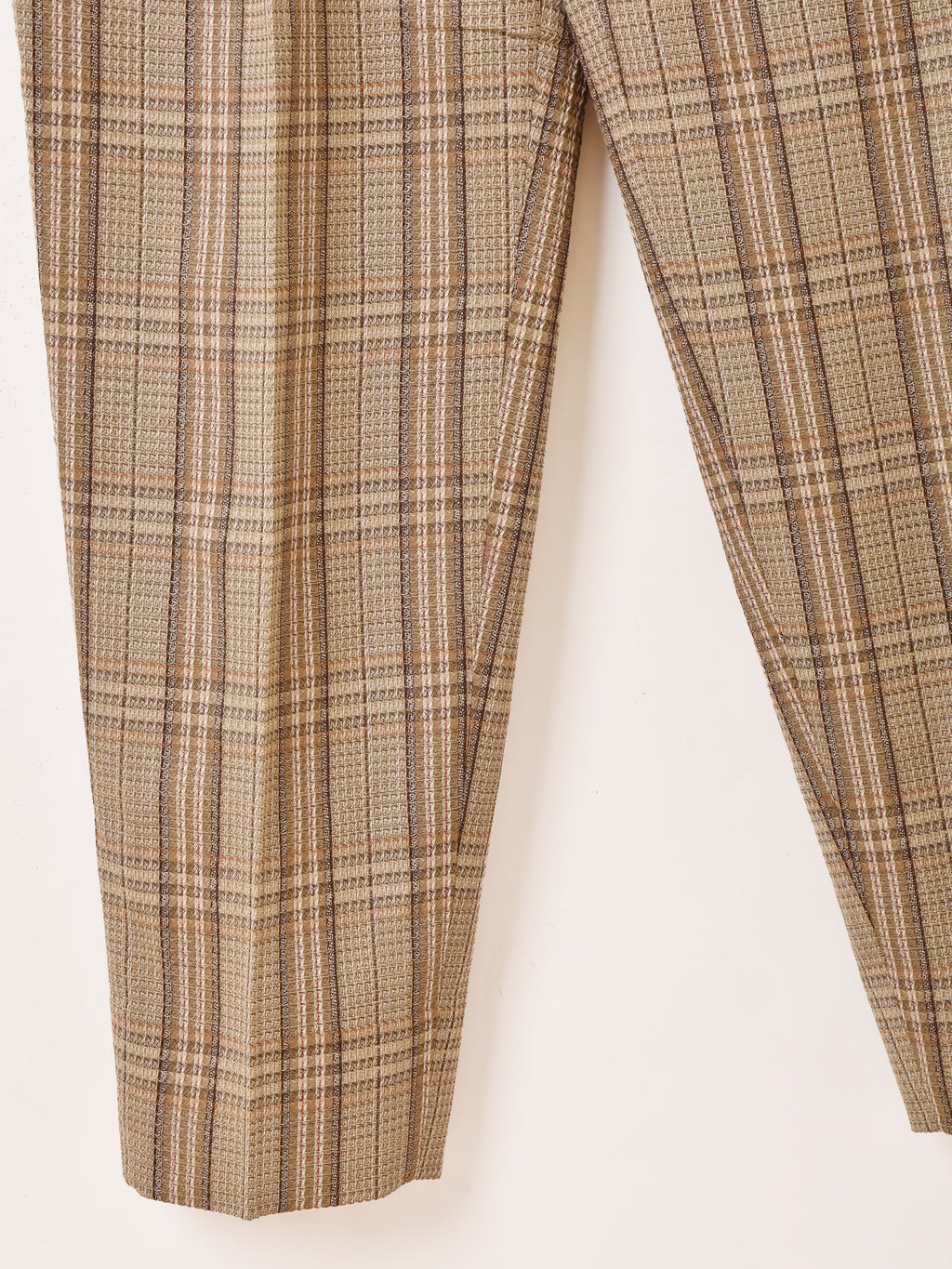 落ち着いたベージュカラーのトラウザーパンツ。タック入りテーパードシルエットですっきりと着こなせます。
