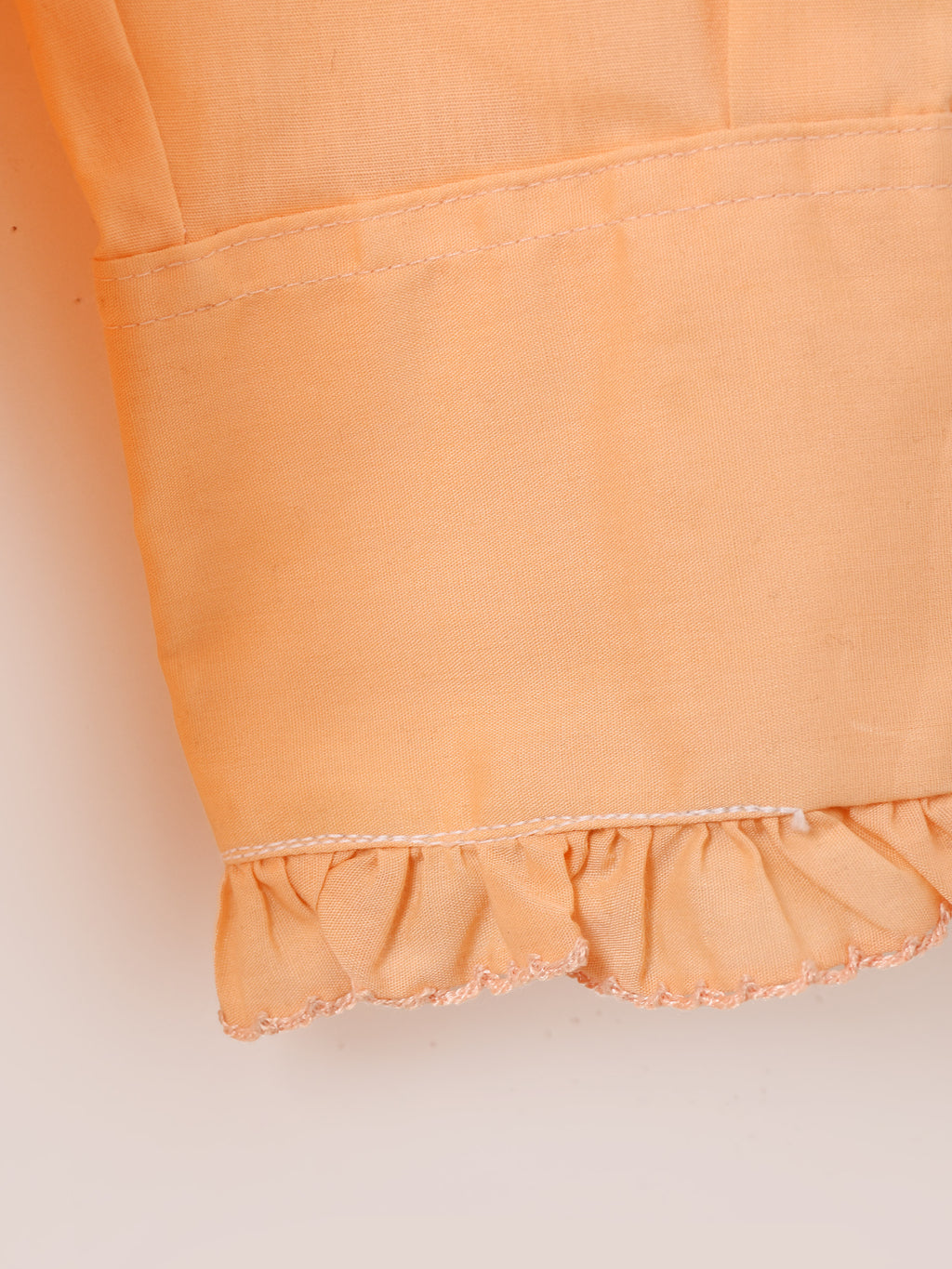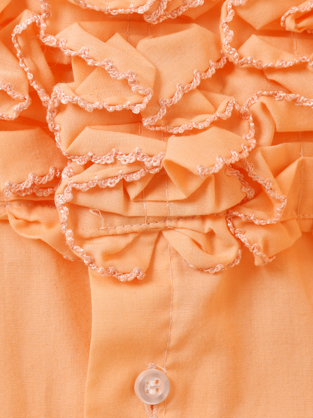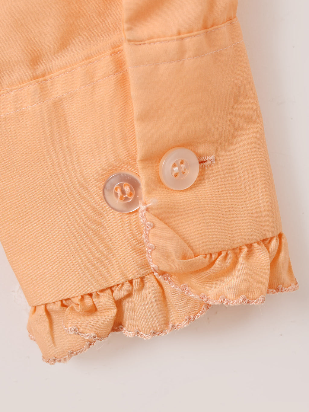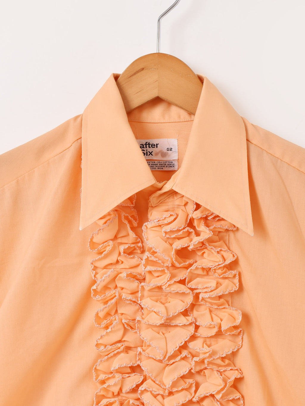 70年代頃のアフターシックスの長袖シャツ。オレンジボディにフリルをたっぷりとあしらい、華やかでヒッピーな雰囲気が◎。袖はカフス仕様、ドレッシーな着こなしにおすすめです。