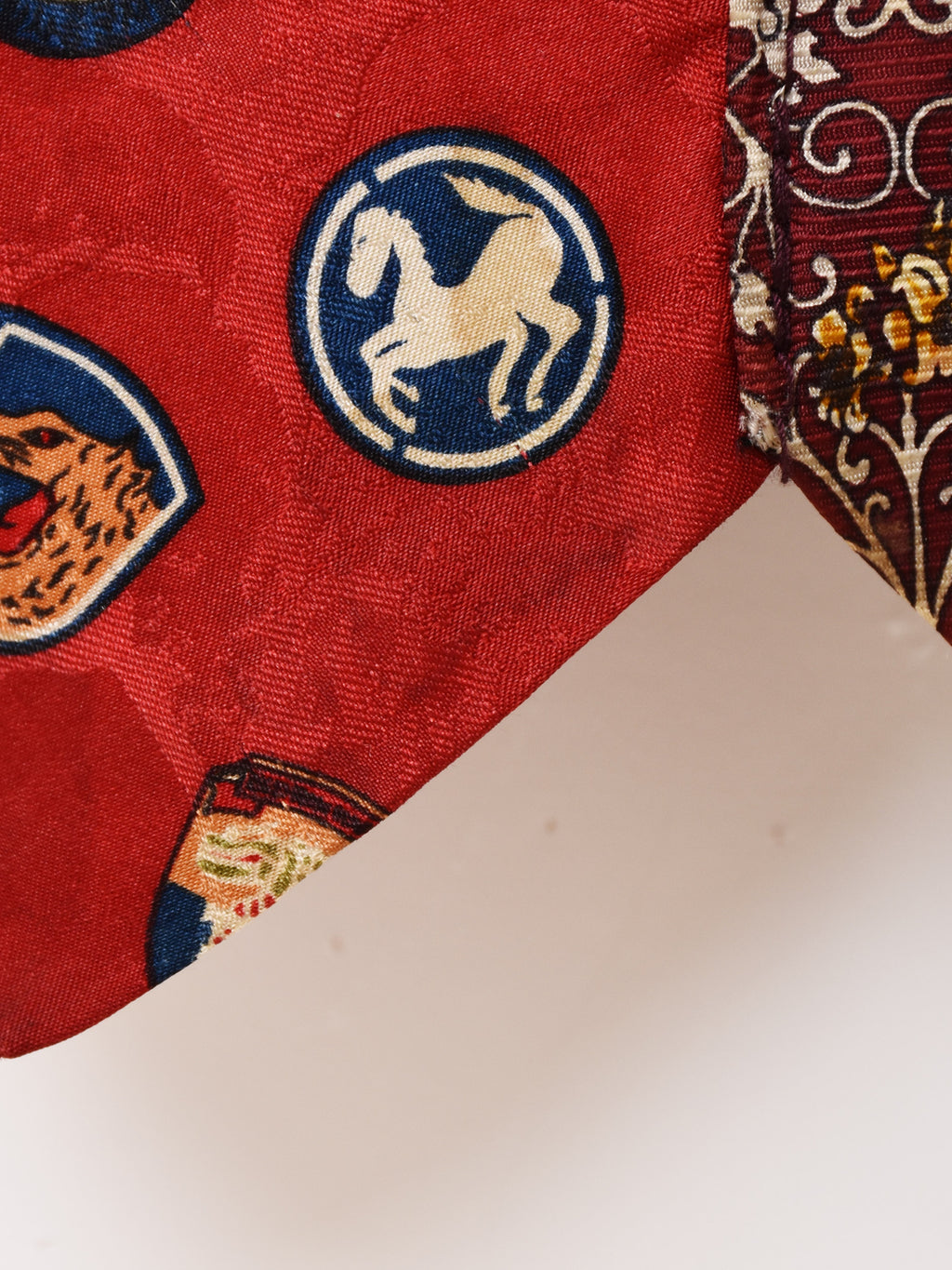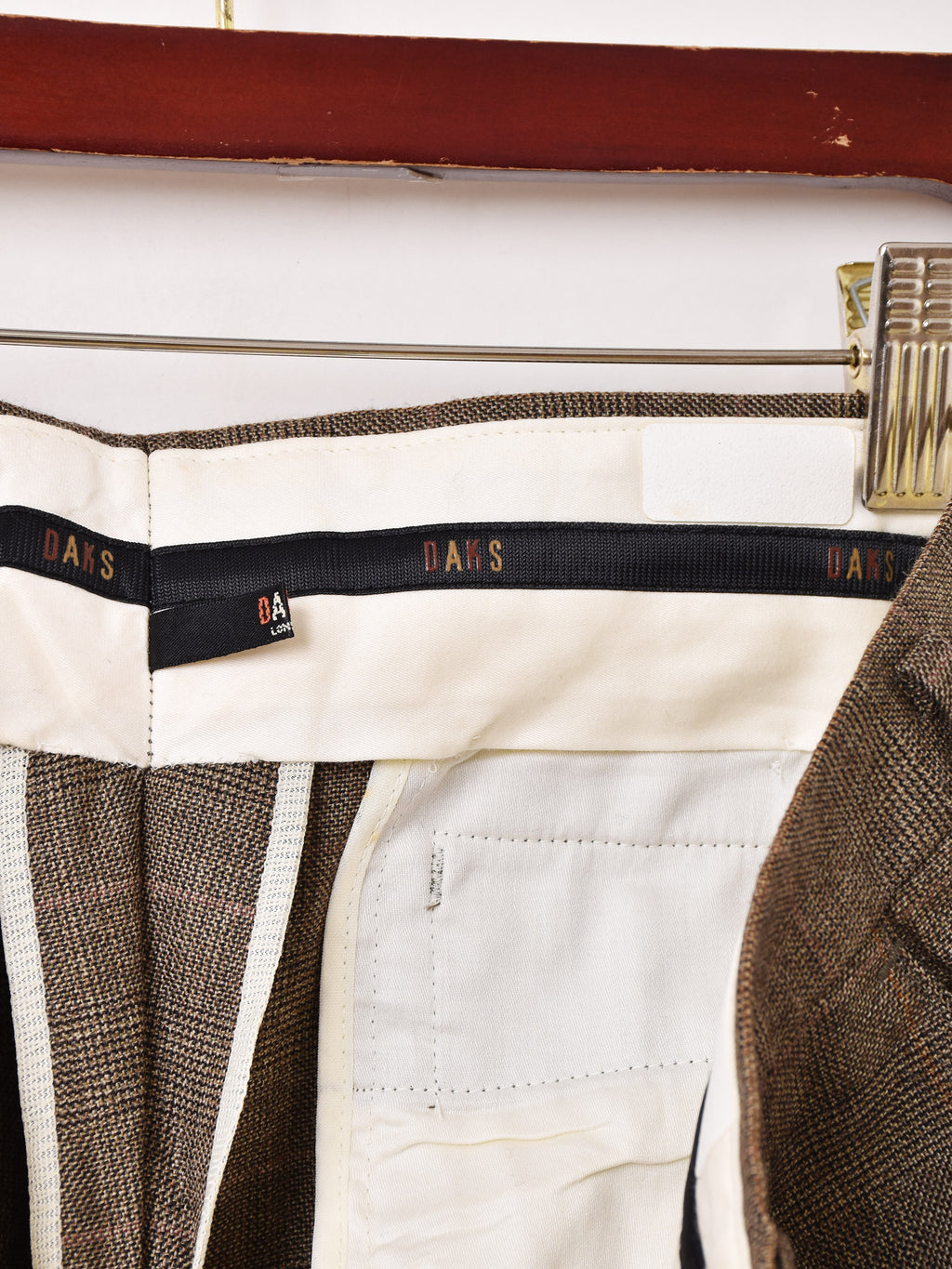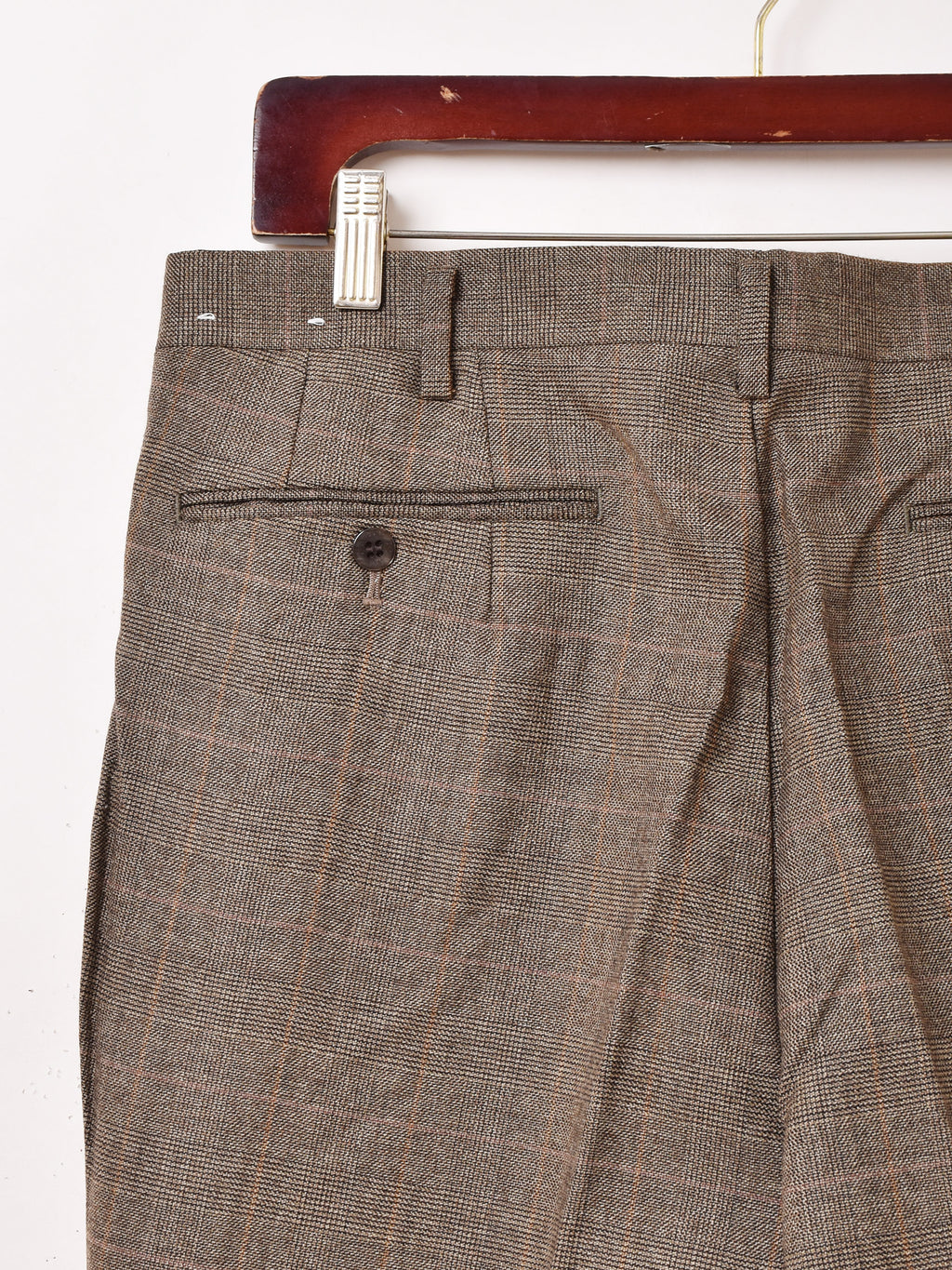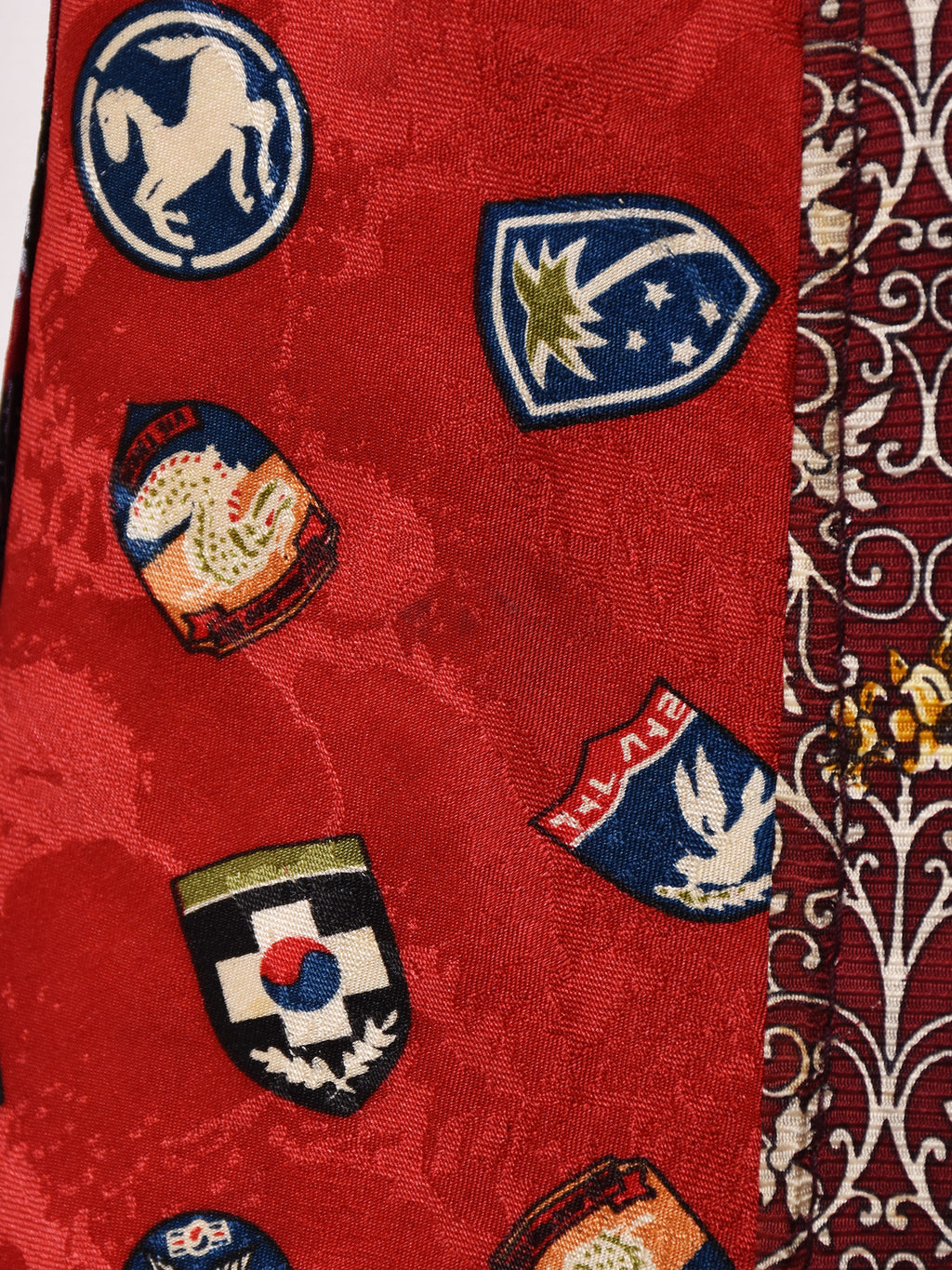 グレンチェック柄のスラックスに、古着のネクタイをドッキングさせたリメイク商品。絶妙なフレアシルエットで脚長効果も期待できそう。コーディネートのアクセントになること間違いなしの一着です。
