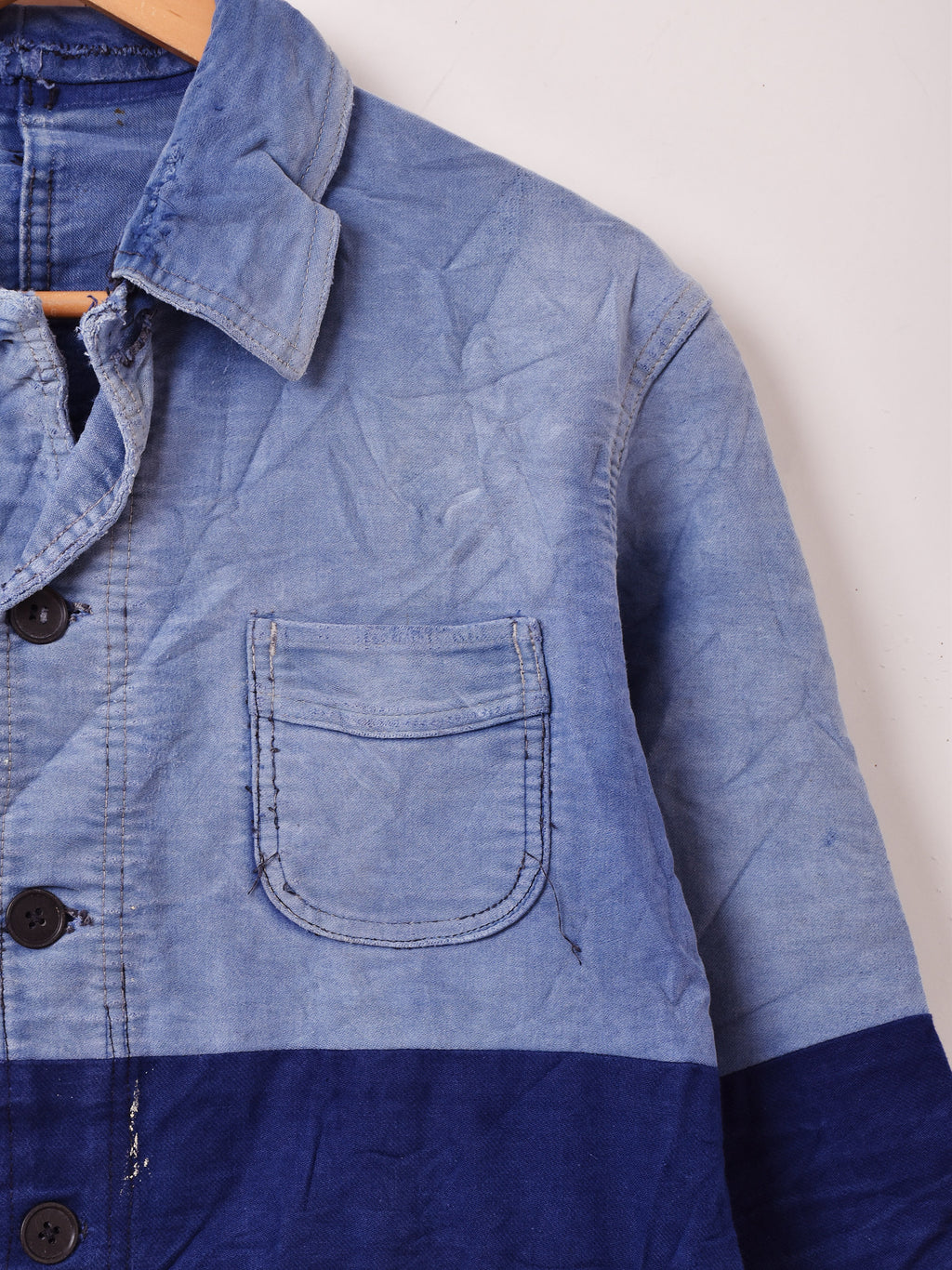 濃淡2色のモールスキンワークジャケットがドッキングされたリメイクジャケット。