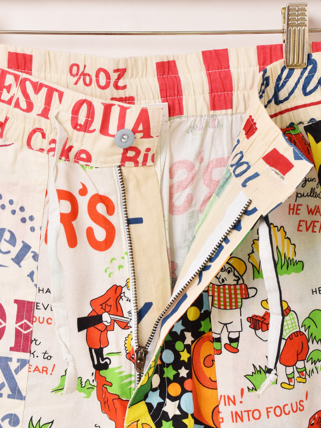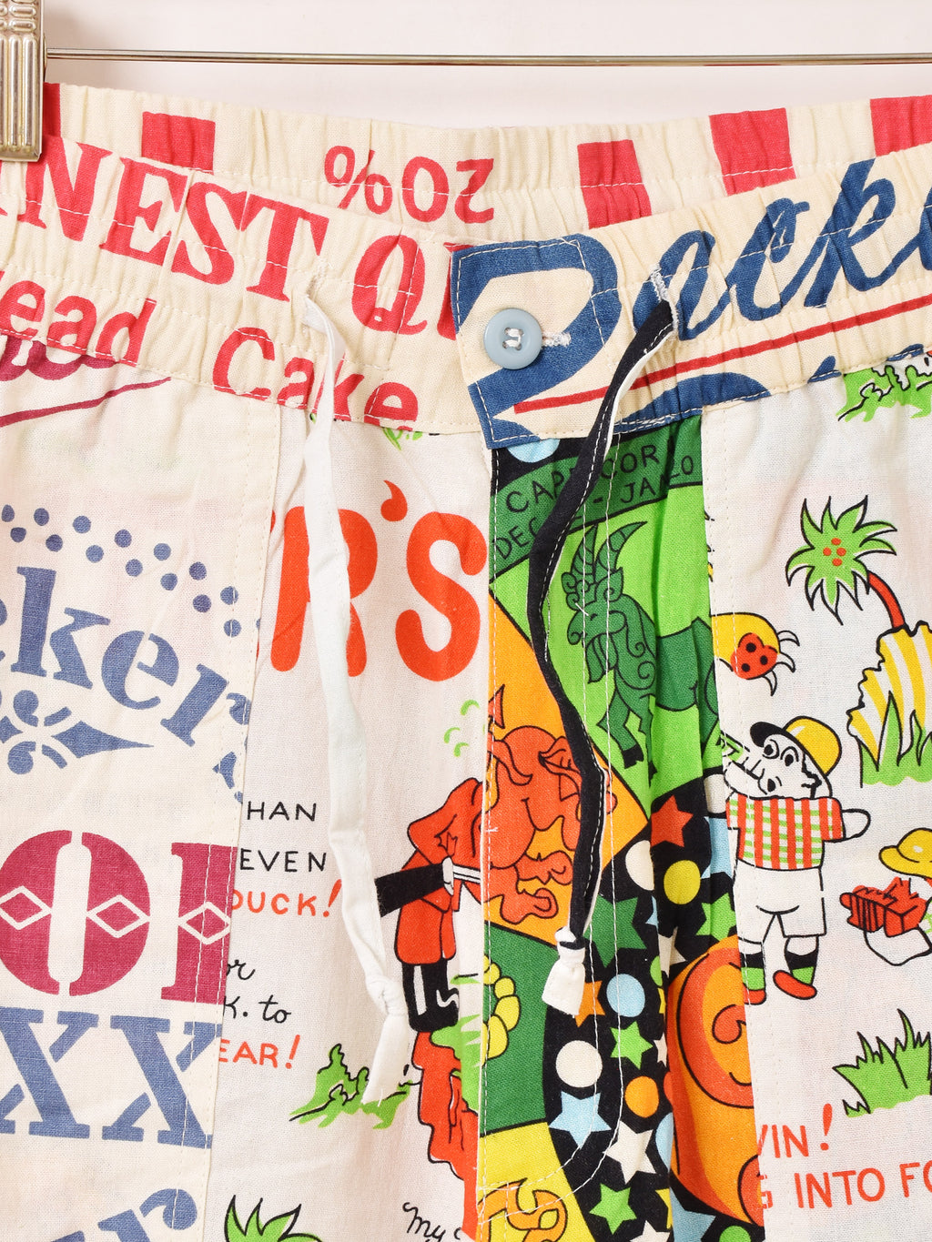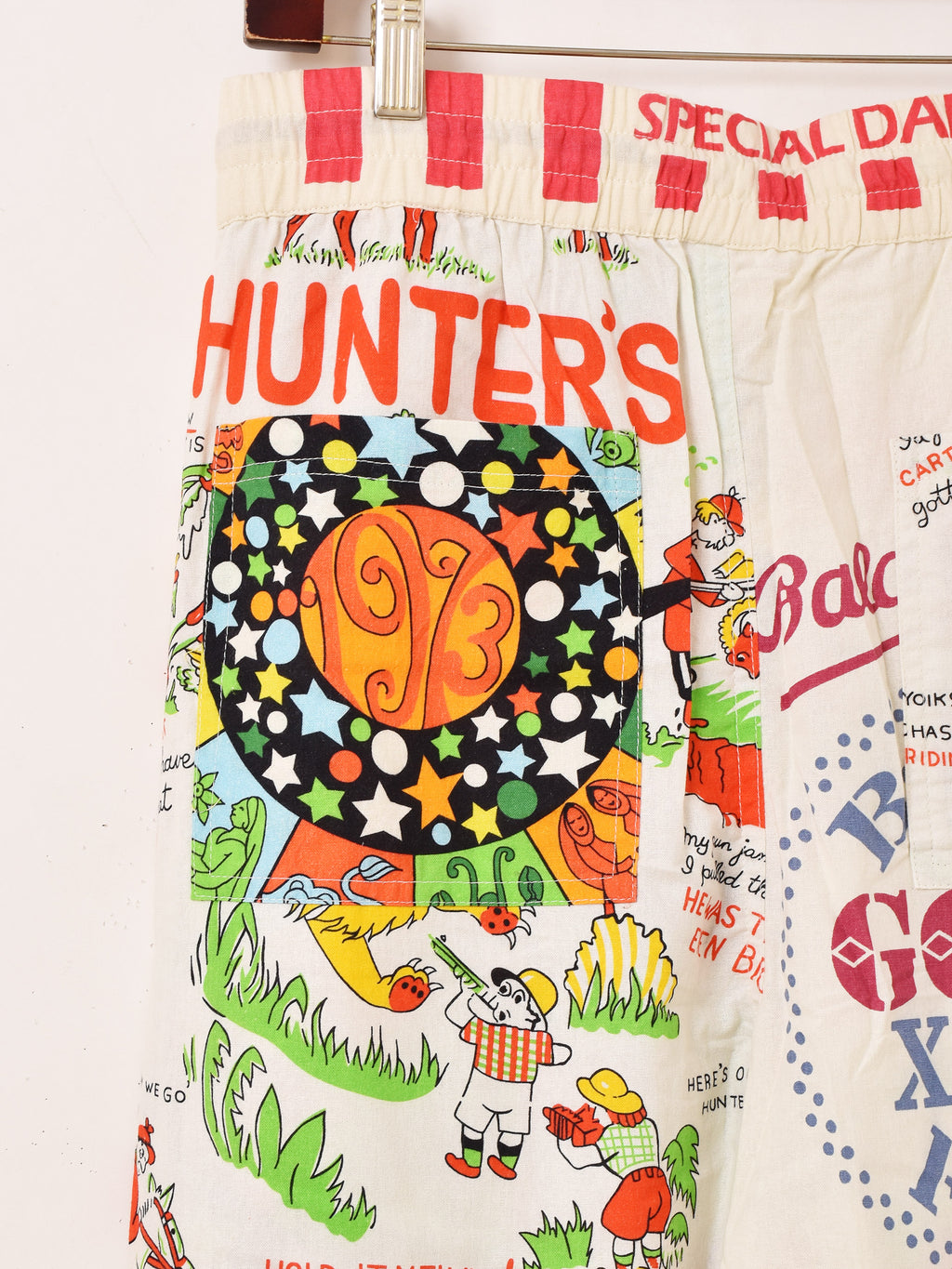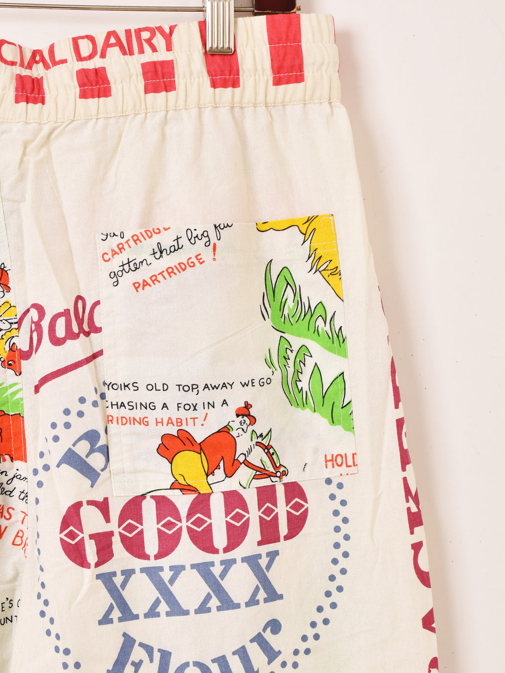 様々なズタ袋のパッケージデザインをパッチワークして仕立てたイージーパンツ。生地にはBackers(バッカーズ)の歴代フィードサックアイテムの柄を使用した贅沢な一着です。古着のような風合いとデザインがコーディネートの主役におすすめです。ウエストはゴム紐仕様、フリーサイズで着用いただけます。