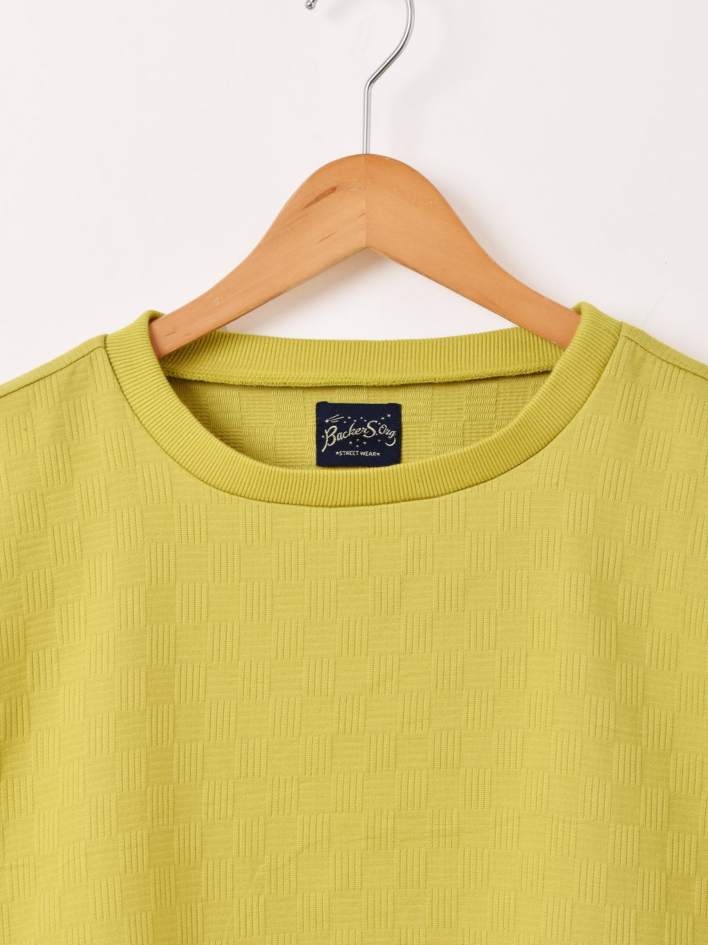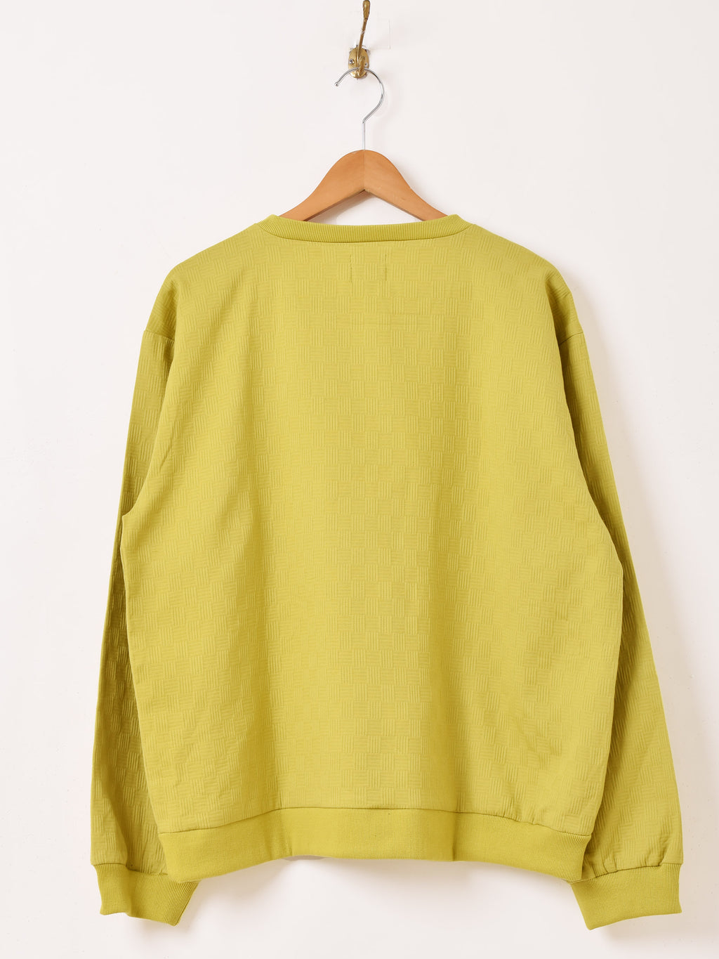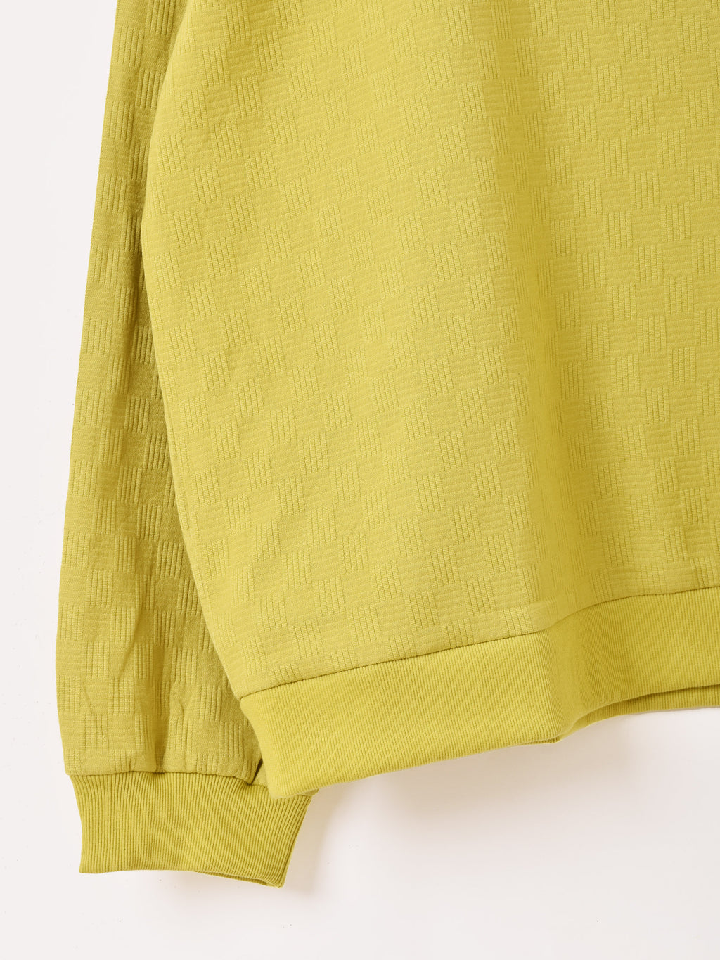 織柄のブロックチェック生地の長袖プルオーバートップス。薄手なのでロンT感覚のように着こなせます。フリーサイズで着用できます。