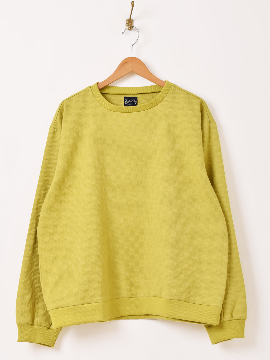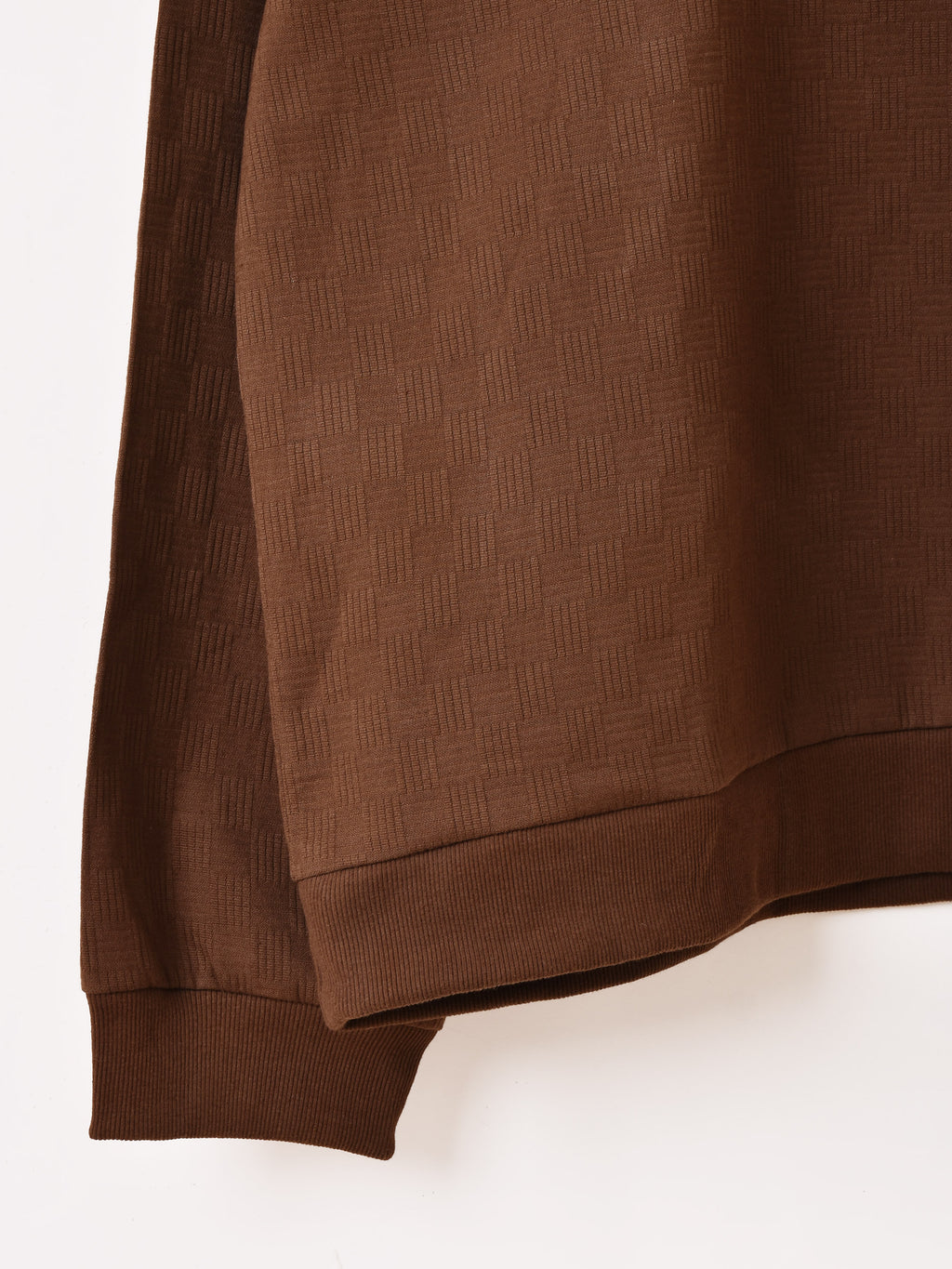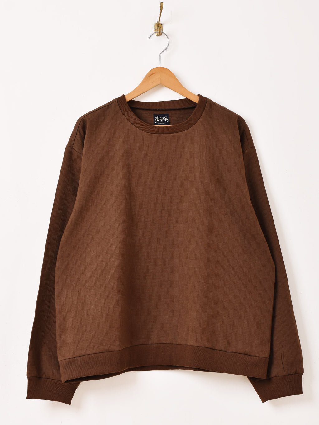 織柄のブロックチェック生地の長袖プルオーバートップス。薄手なのでロンT感覚のように着こなせます。フリーサイズで着用できます。