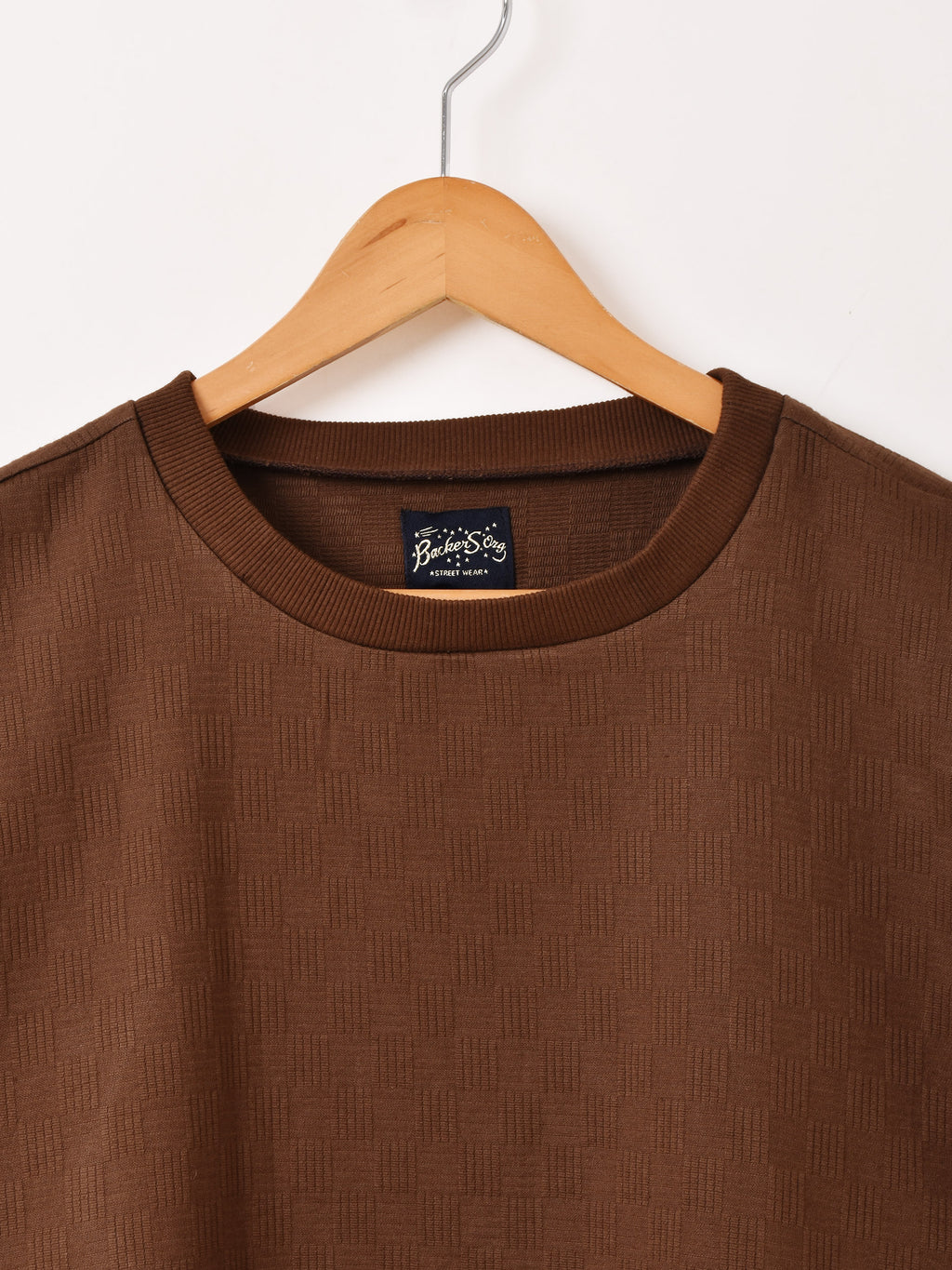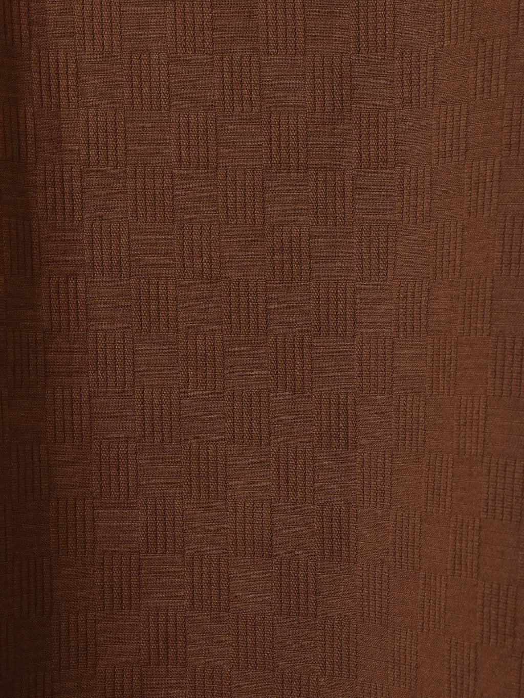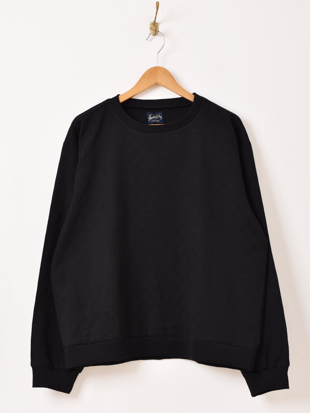 織柄のブロックチェック生地の長袖プルオーバートップス。薄手なのでロンT感覚のように着こなせます。フリーサイズで着用できます。