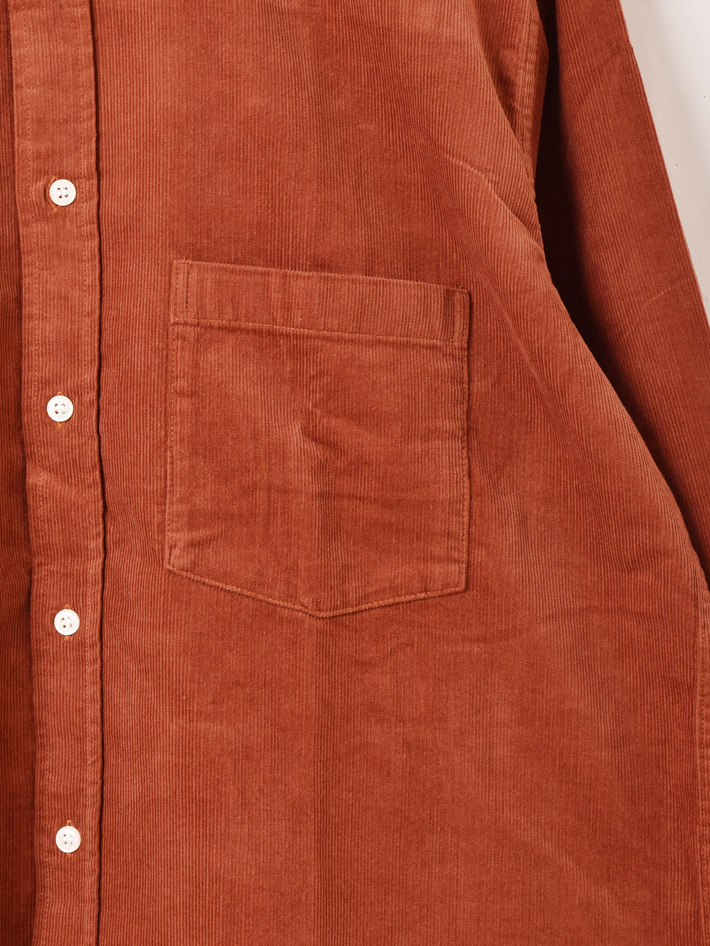 細畝のコーデュロイ生地で仕立てた長袖シャツ。シンプルなディテールで、コーデの主役としてもアウターのインナーとしても着こなせます。