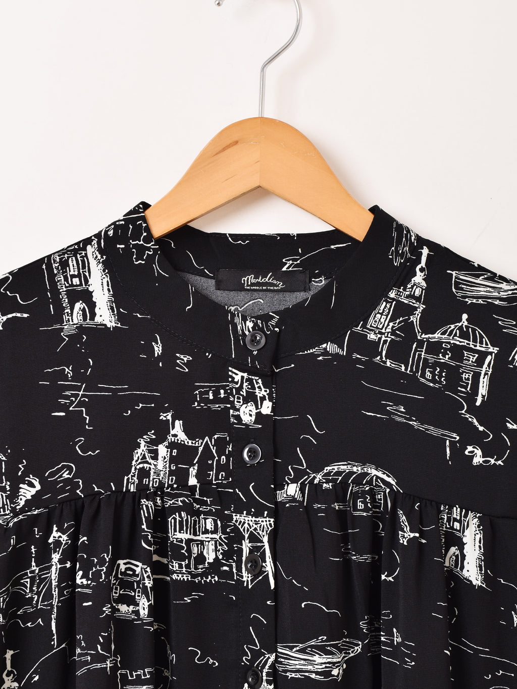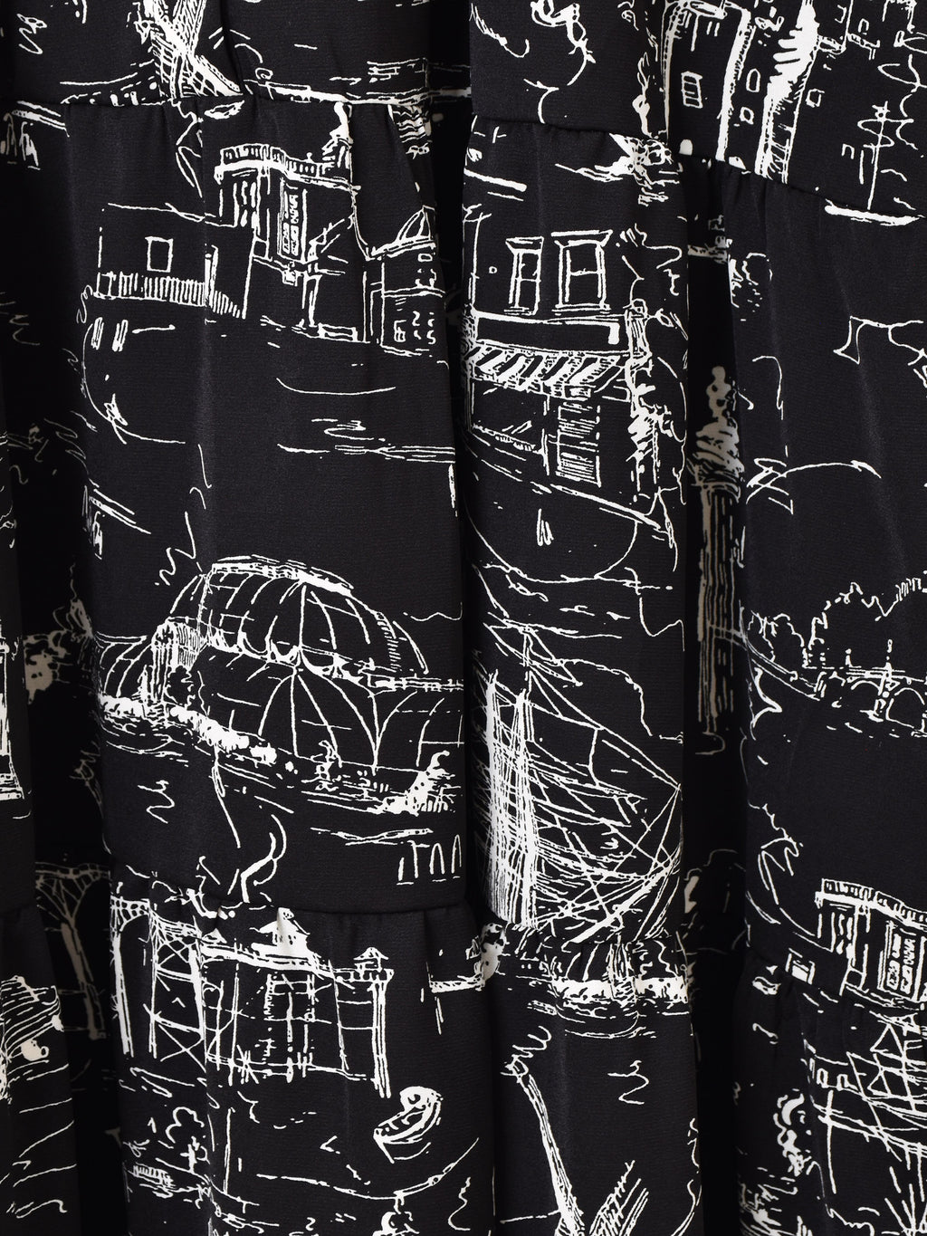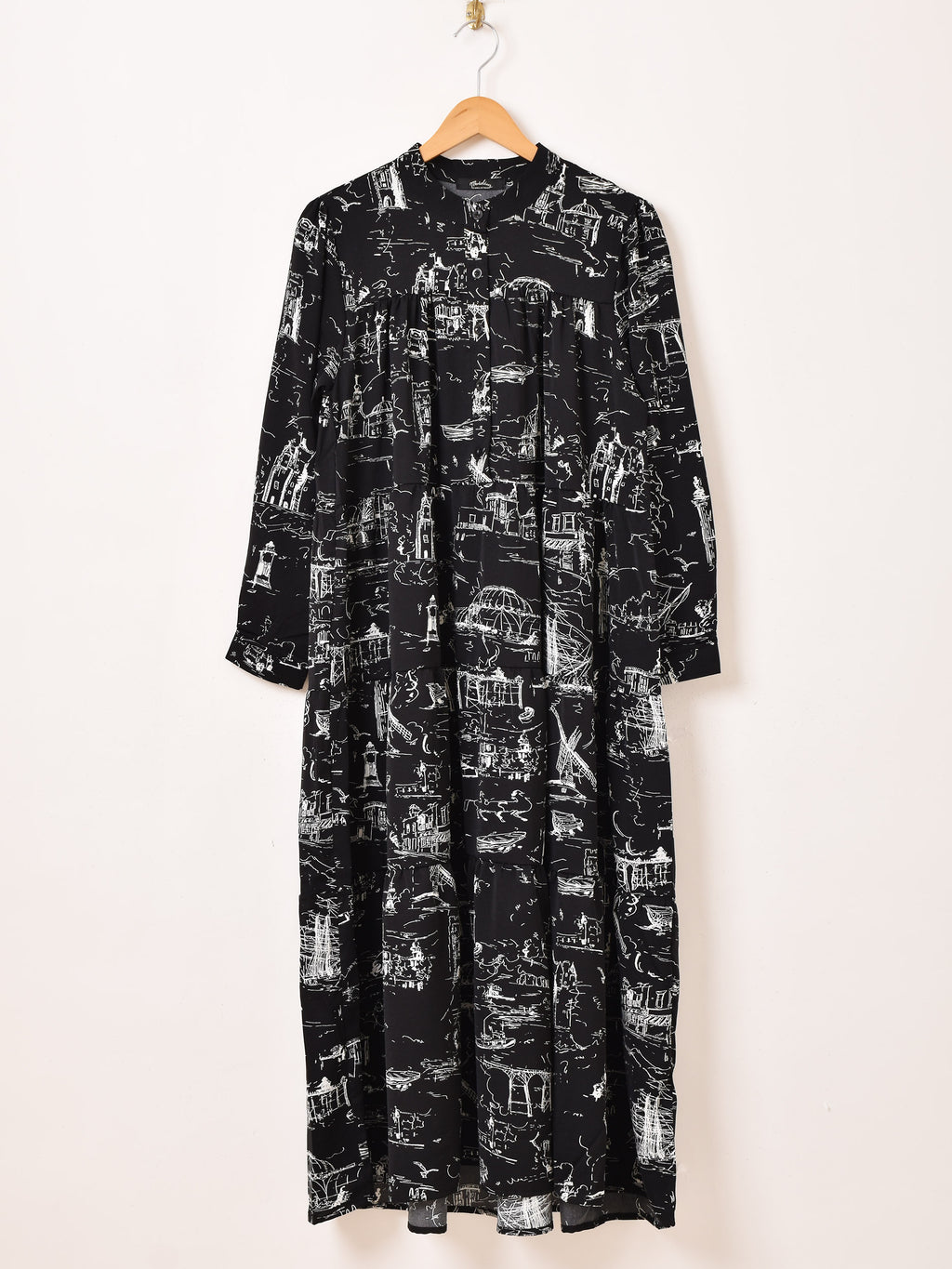 【3色展開】Meridian 総柄 長袖 ティアードワンピース