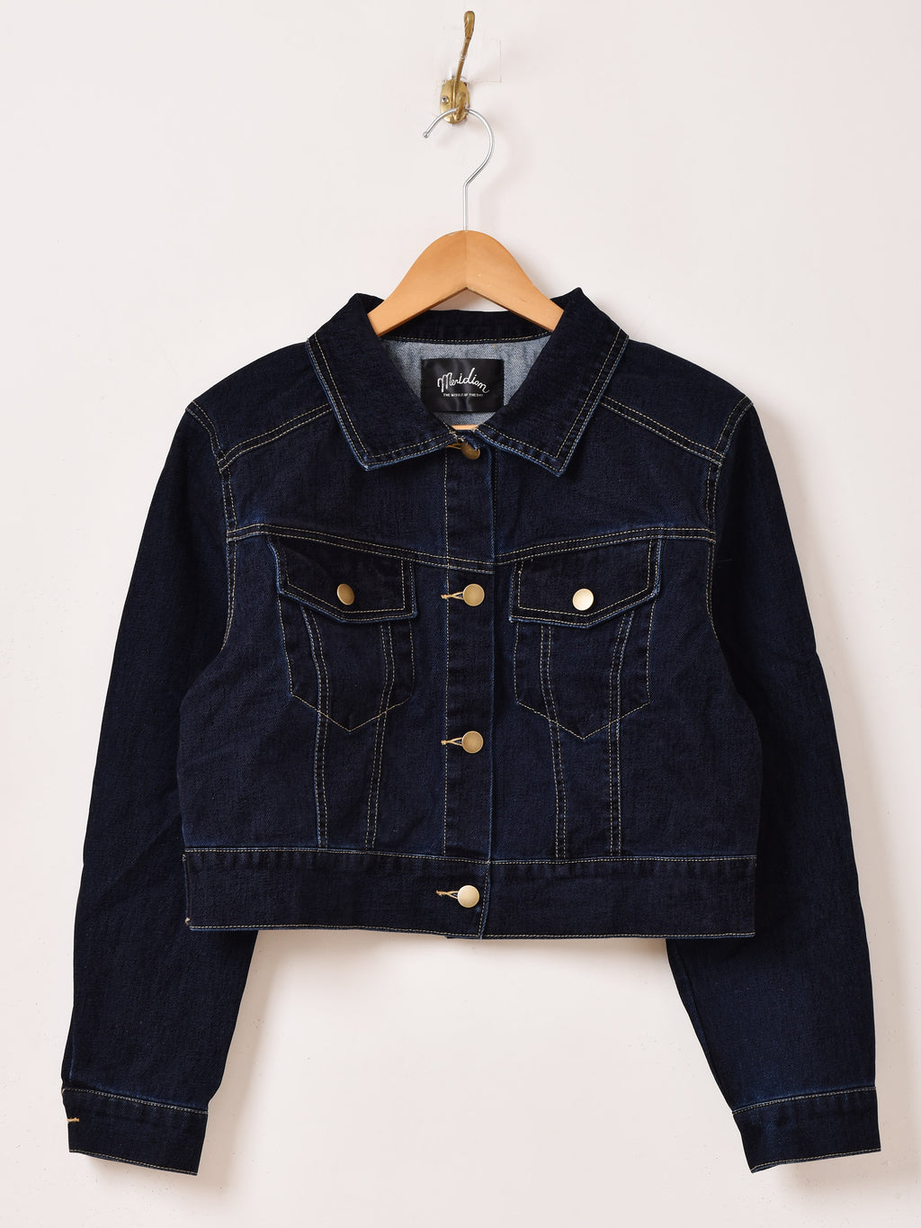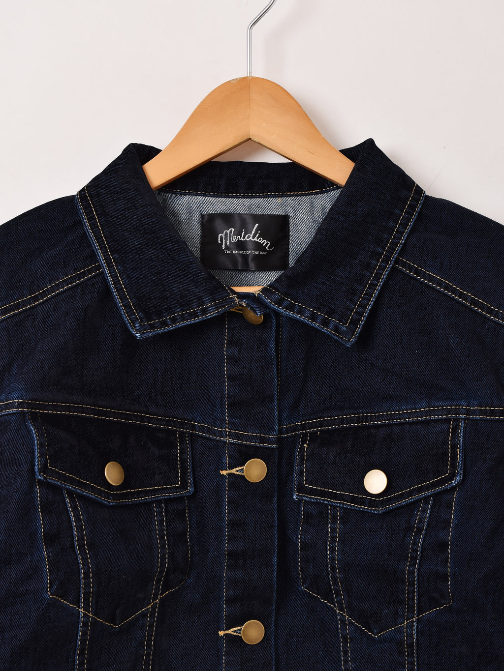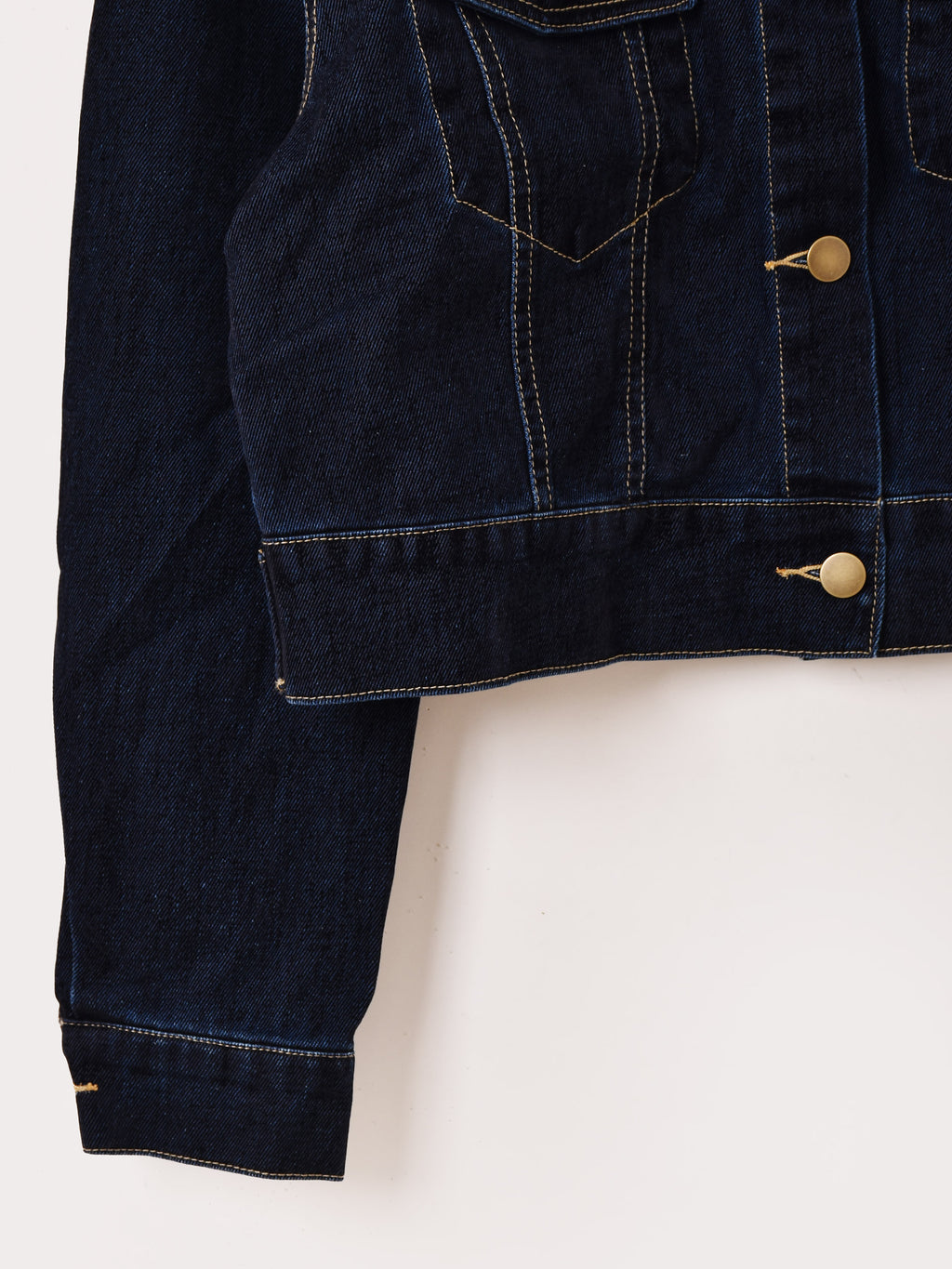 デニム生地にベルベットのような滑らかな肌触りの起毛加工を施したジャケット。上品な光沢感があるので、カジュアルだけでなく綺麗めスタイルにもぴったり。クロップド丈でスタイルアップしながらバランス良く着こなせます。