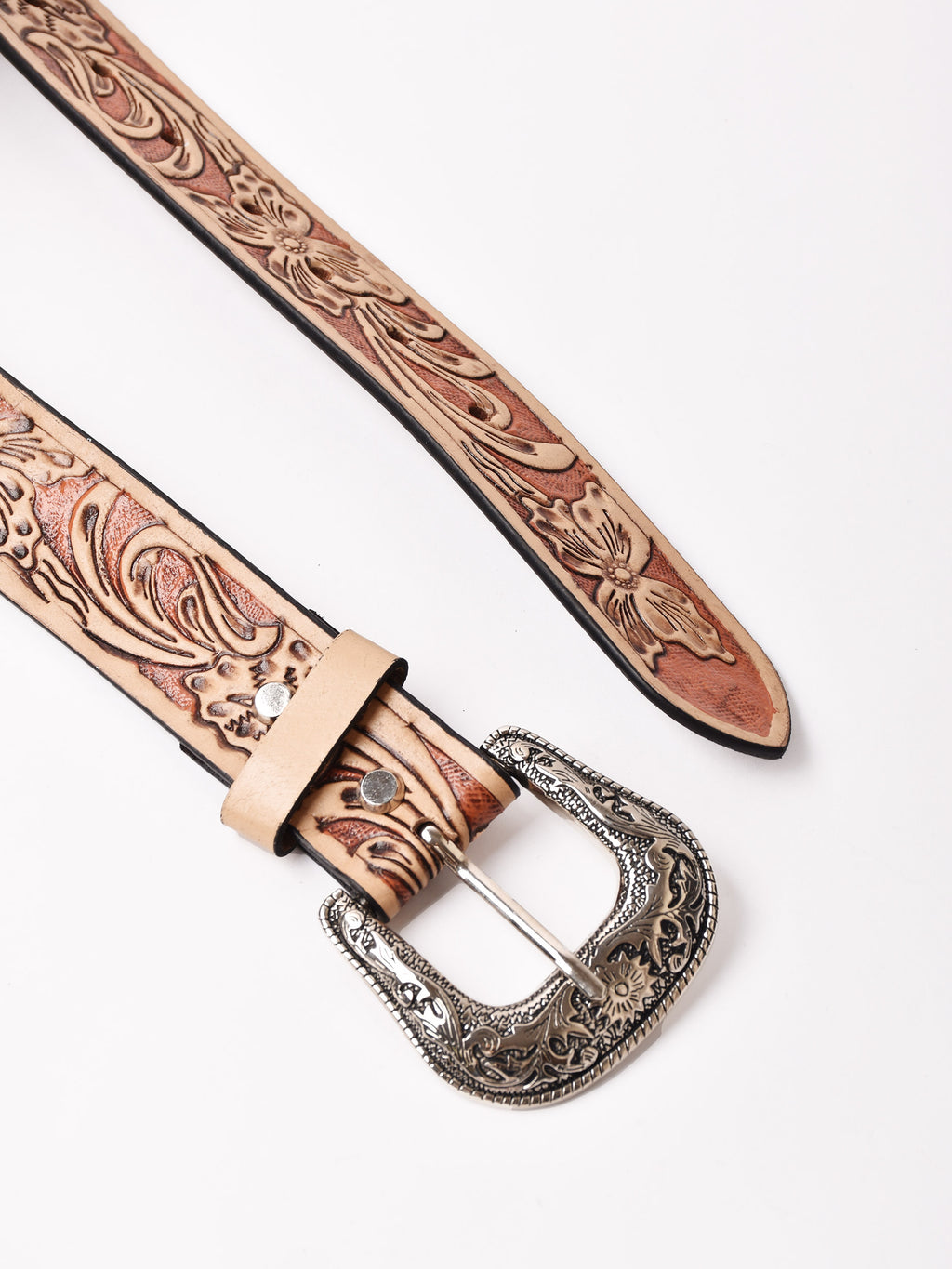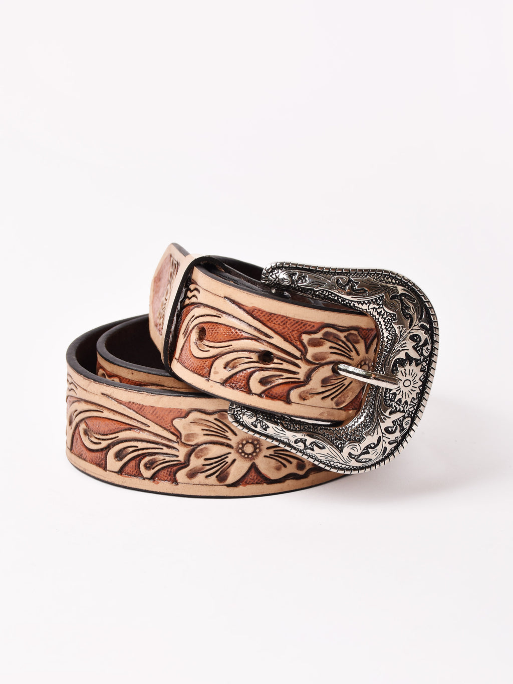 H-07903 LeatherBeltCarvingNat×Brn