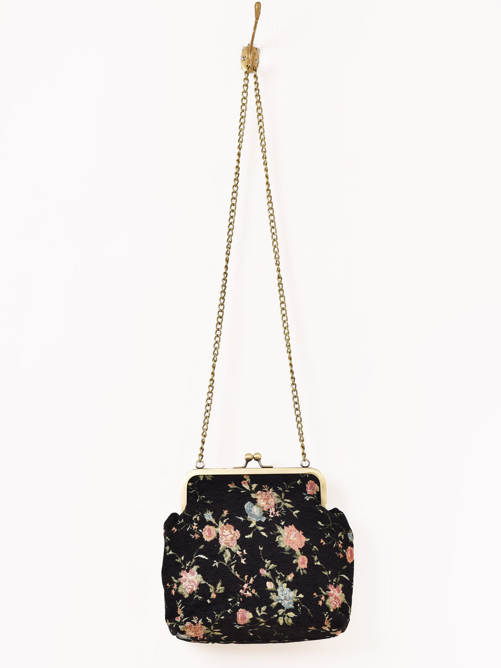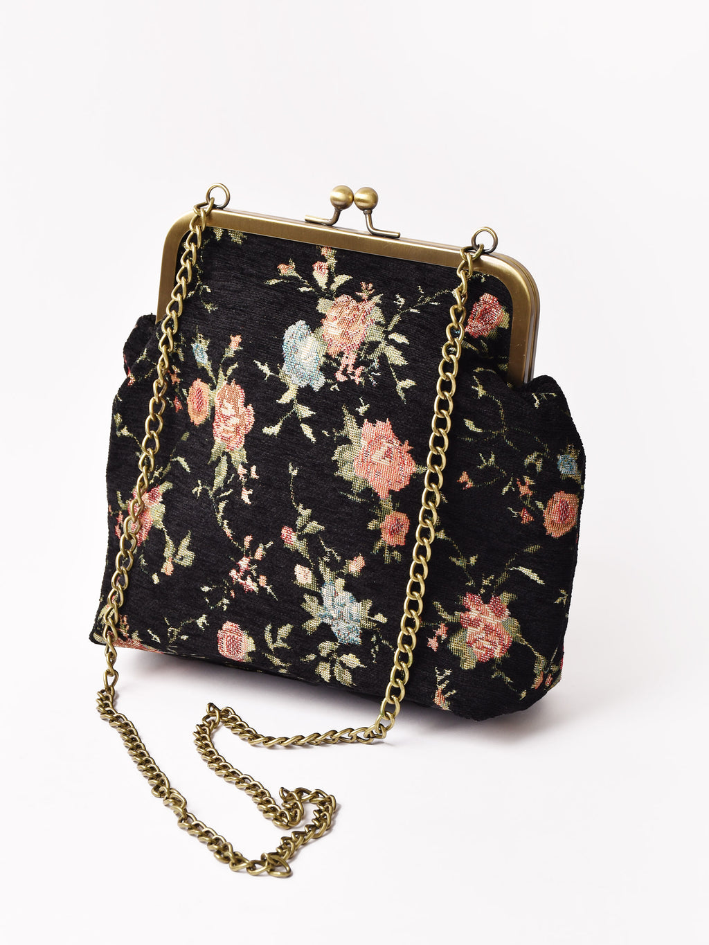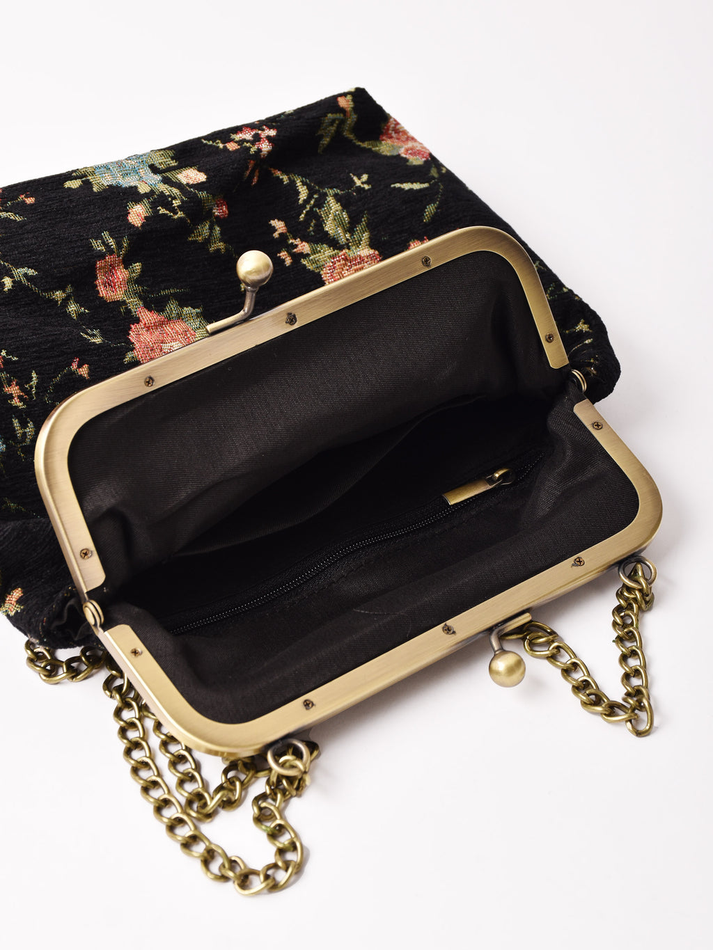 クラシカルなタペストリー生地のチェーンバッグ。パーティーシーンにもおすすめ。持つだけでもコーディネートが一気に華やぐアイテムです。