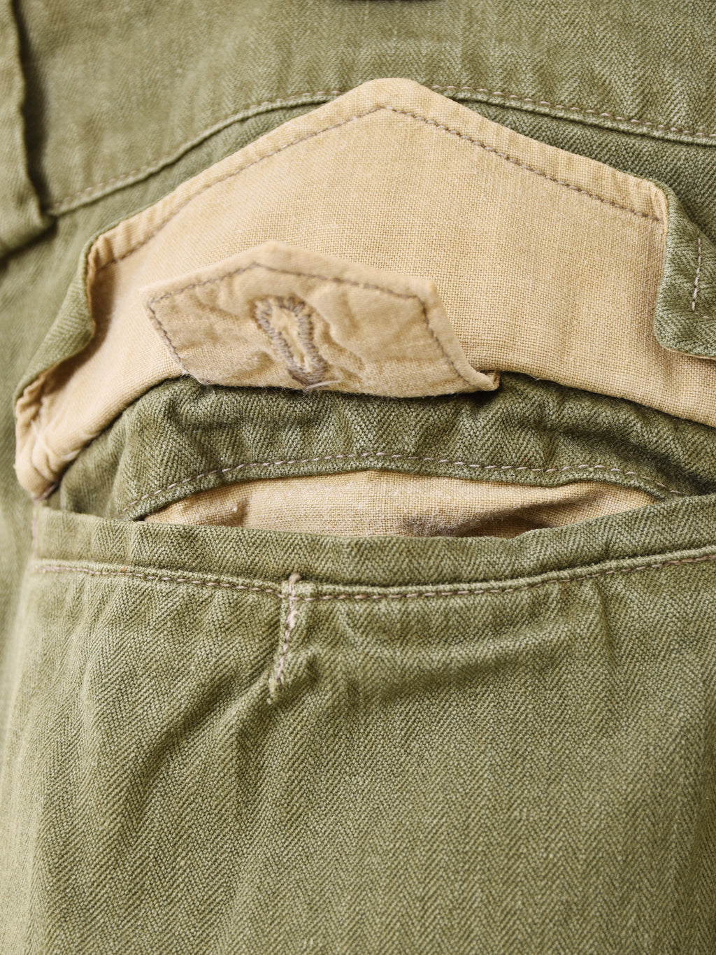 1947年から1960年代にかけて生産されていたM-47カーゴパンツですが、こちらはヘリンボーン生地を使用した後期型モデルになります。