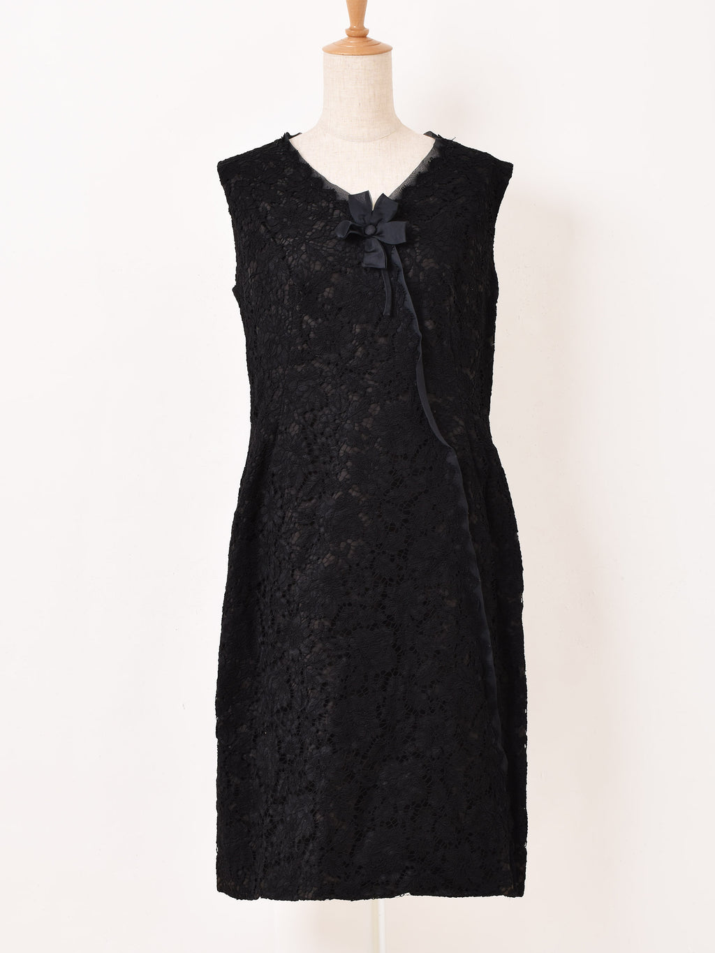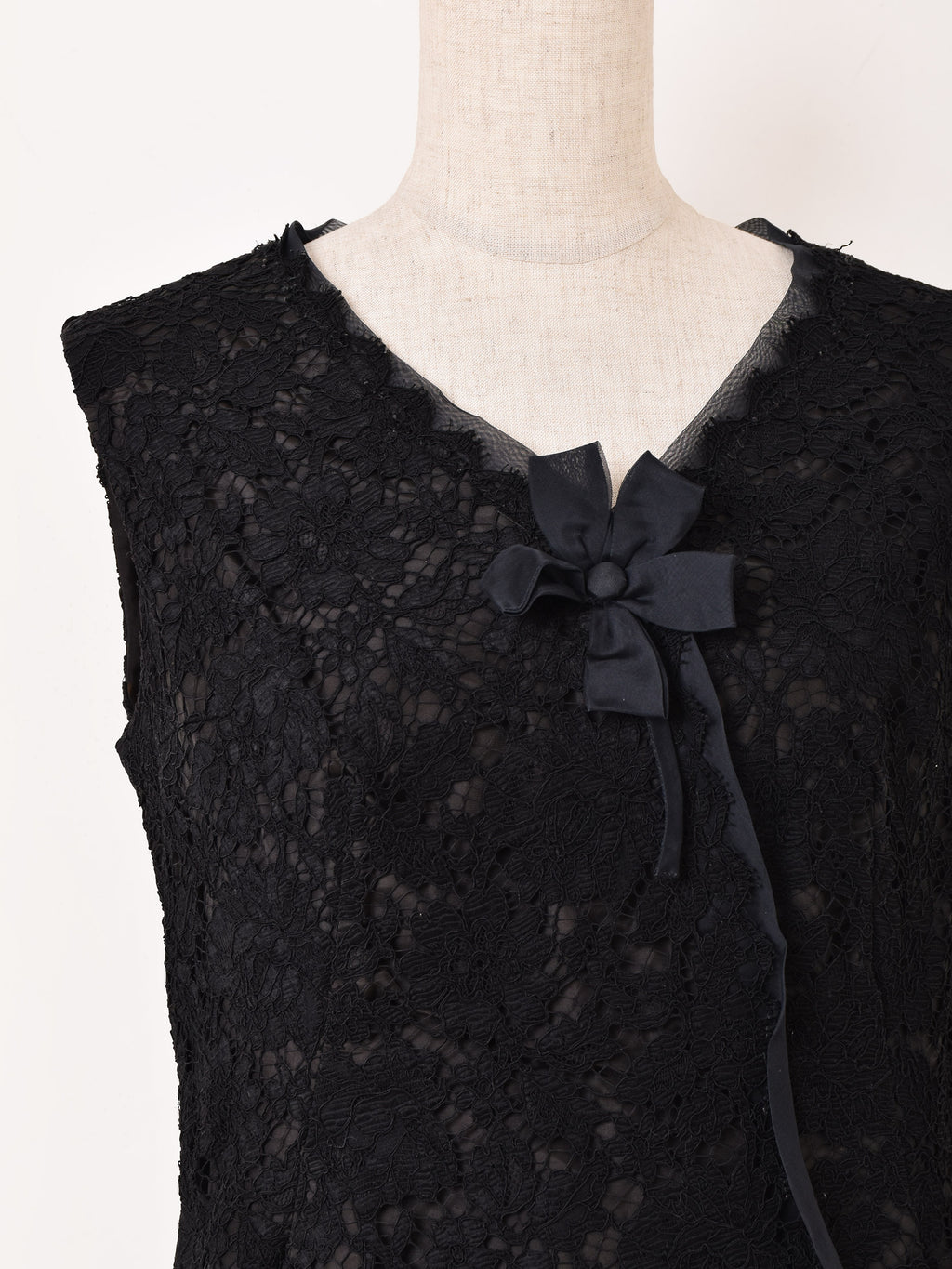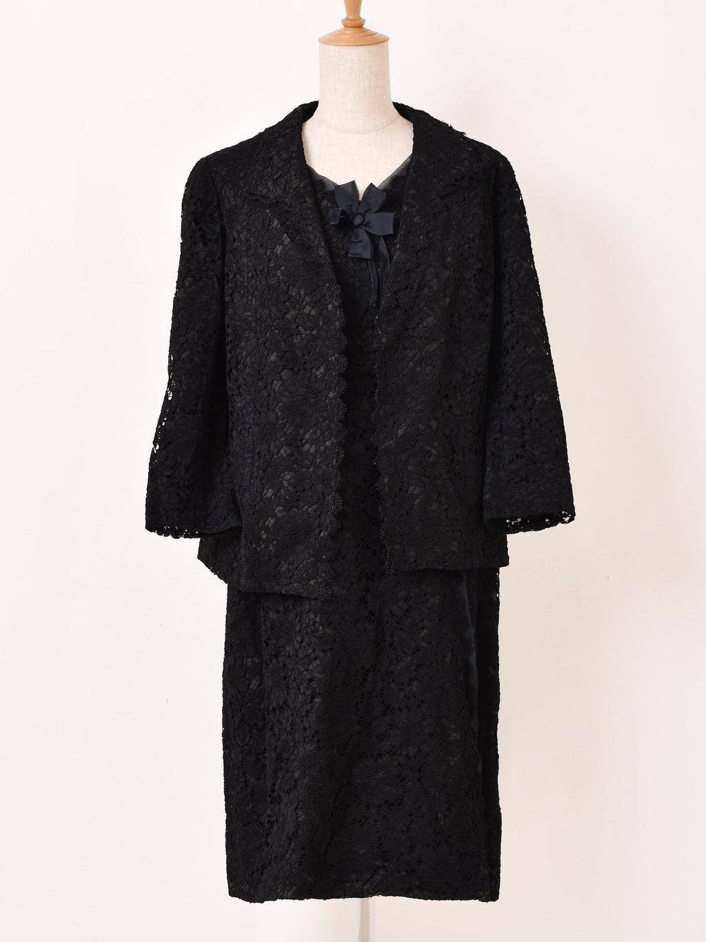 繊細で上品なレース生地で仕立てた、ジャケット+ノースリーブワンピースのセットアップドレス。