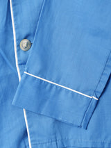 パイピングのように入ったホワイトがアクセントの長袖シャツ。薄手で柔らかく、手触りのよい生地感です。
