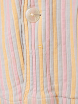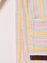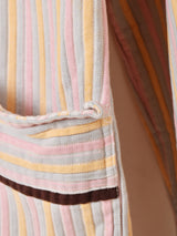 パステルカラーにブラウンのパイピングがよく映えたパジャマシャツ。表面は凸凹とした、ストライプパターンの織り生地になっています。ダメージは多々見られますが、古着らしい風合いとデザインが魅力的な一着です。