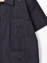 刺繍や4つポケットなどキューバシャツ風のデザインが爽やかな半袖シャツ。ライトなコットン生地でハリがあり、かなり涼しく着用できます。バックスタイルにも抜かりがなくデニムやスラックスにさらっと合わせて様になる、デザイン性の高いアイテムです。