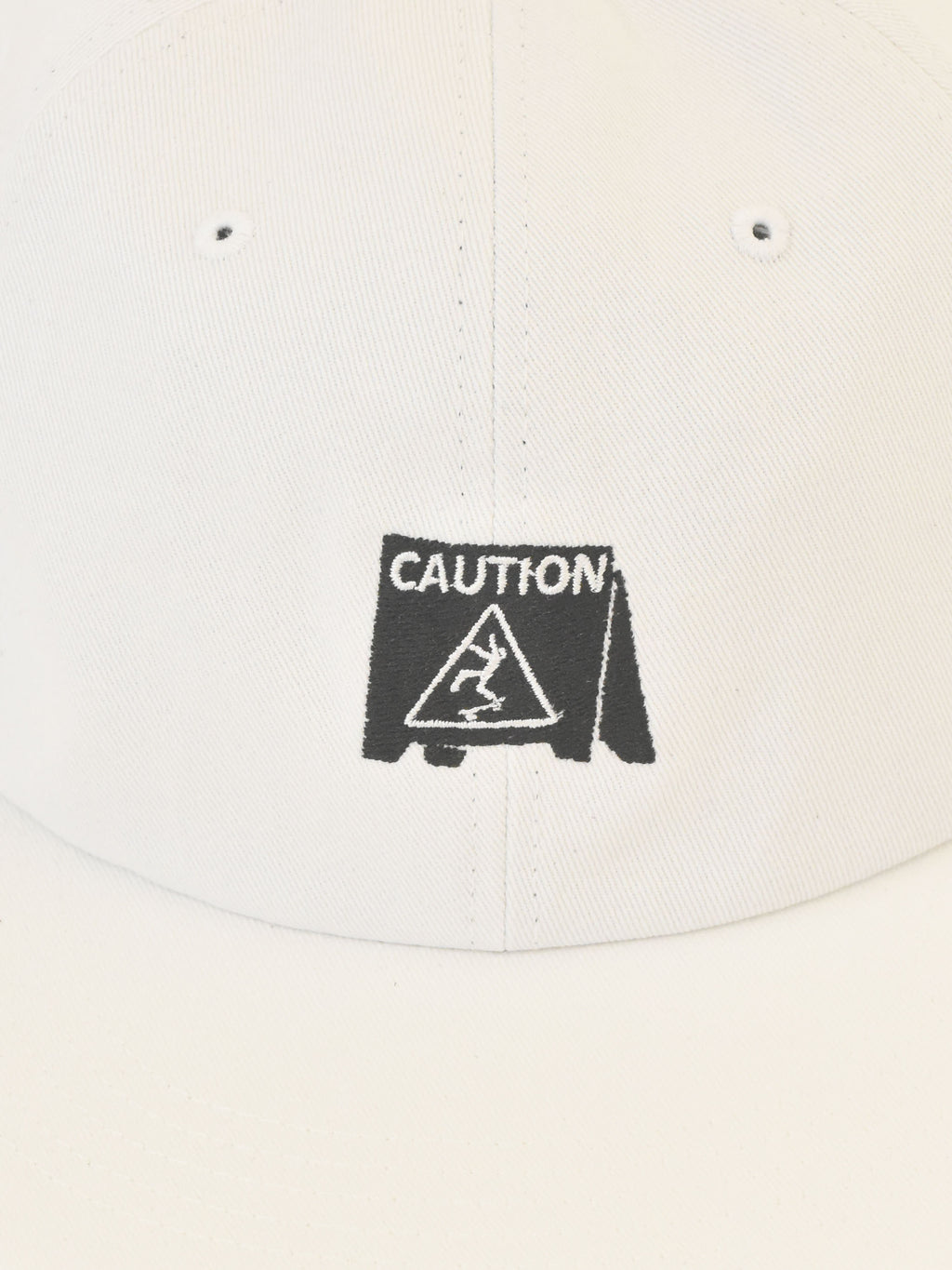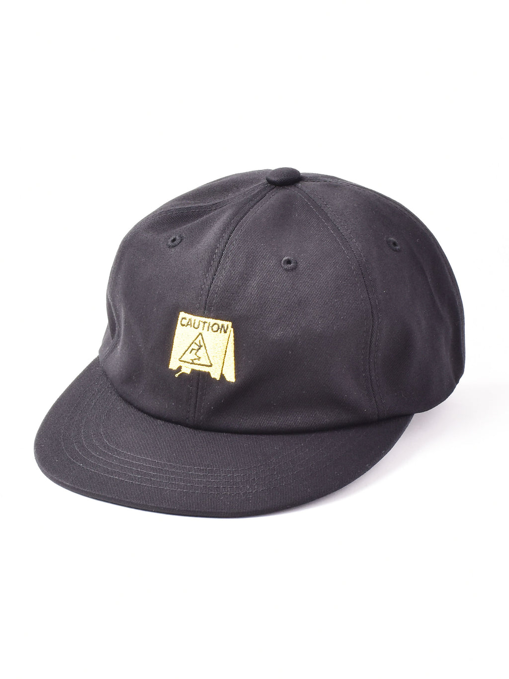 CAUTIONの刺繍が目を惹くワンポイントキャップ。ハリのあるコットン生地です。