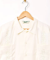 刺繍や4ポケットのデザインが魅力のグアヤベラシャツ。ハリのあるライトなコットン素材で、涼し気な生地感です。デニムやスラックスにさらっと合わせて様になるアイテムです。