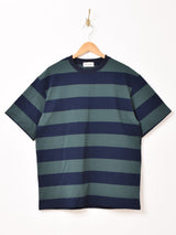 太めのボーダー柄が目を惹くTシャツ。やや厚みのあるコットン生地です。