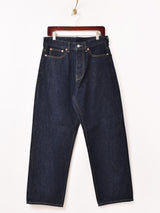 インディゴブルーの569型デニムパンツ。ゆったりめのストレートシルエットで取り入れやすい定番アイテムです。しっかりとした13オンスの生地です。