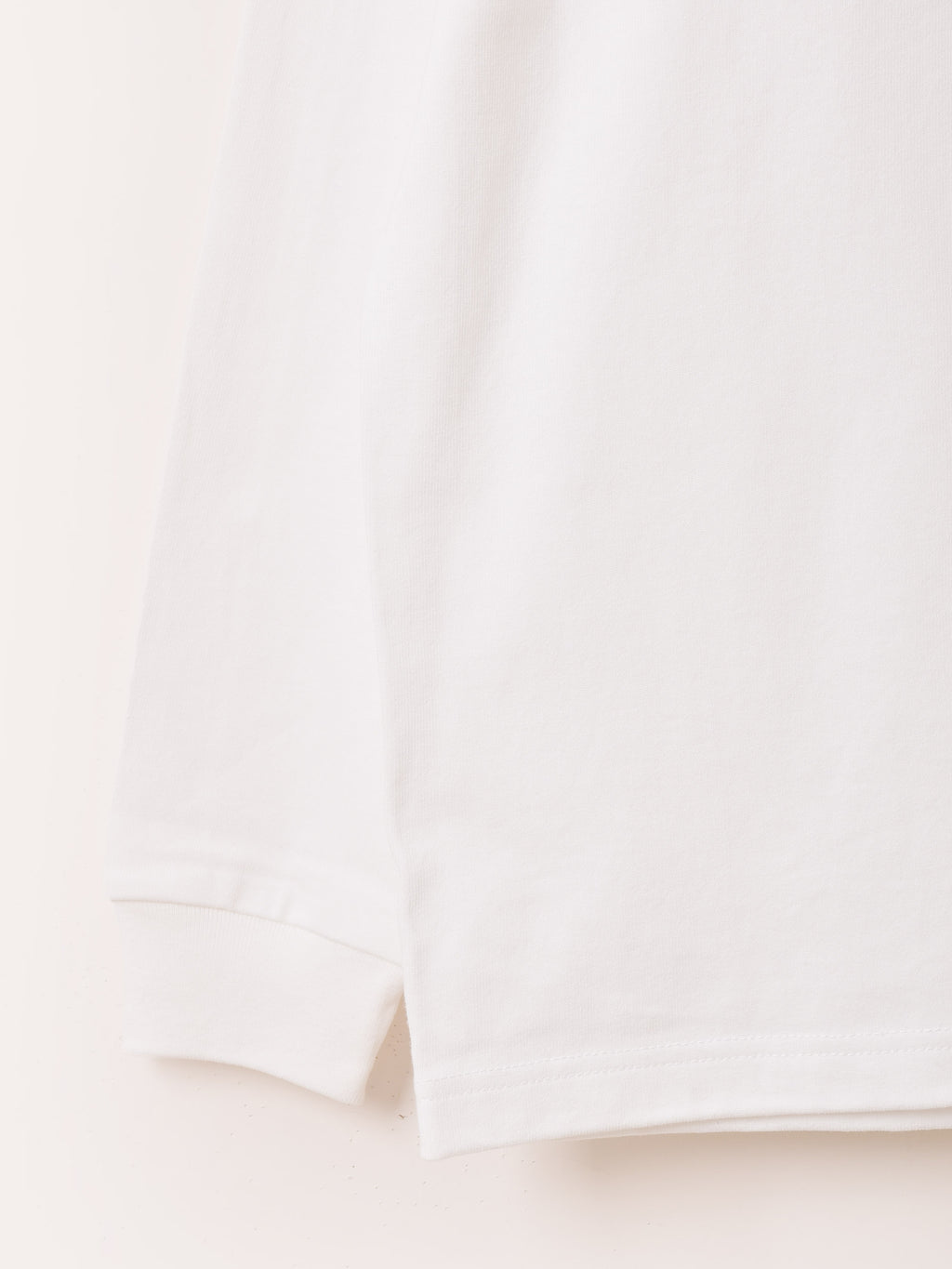 胸元と背中のヴィンテージライクなプリントが目を惹く長袖Tシャツ。9.1オンスのヘビーなコットン生地です。