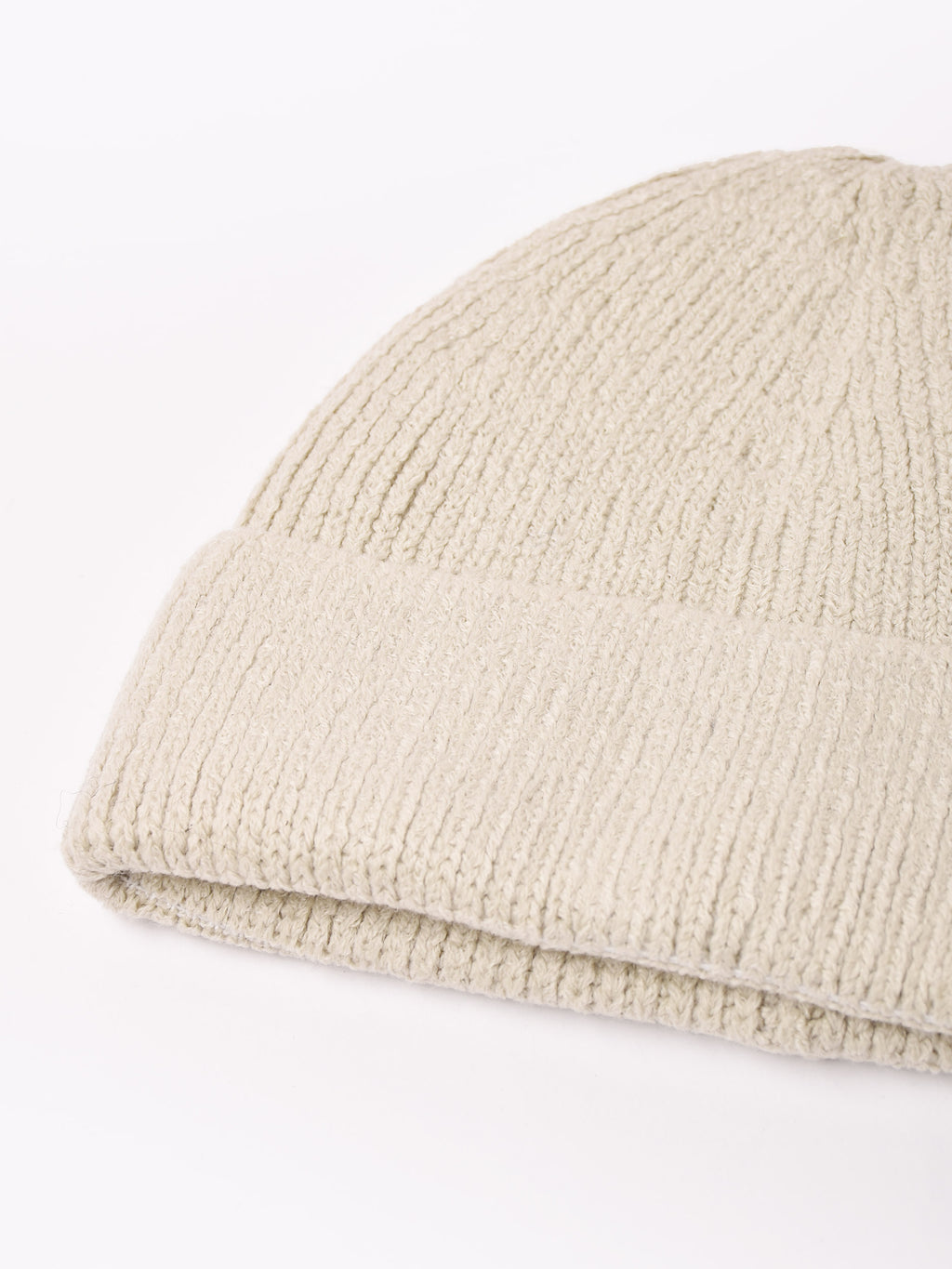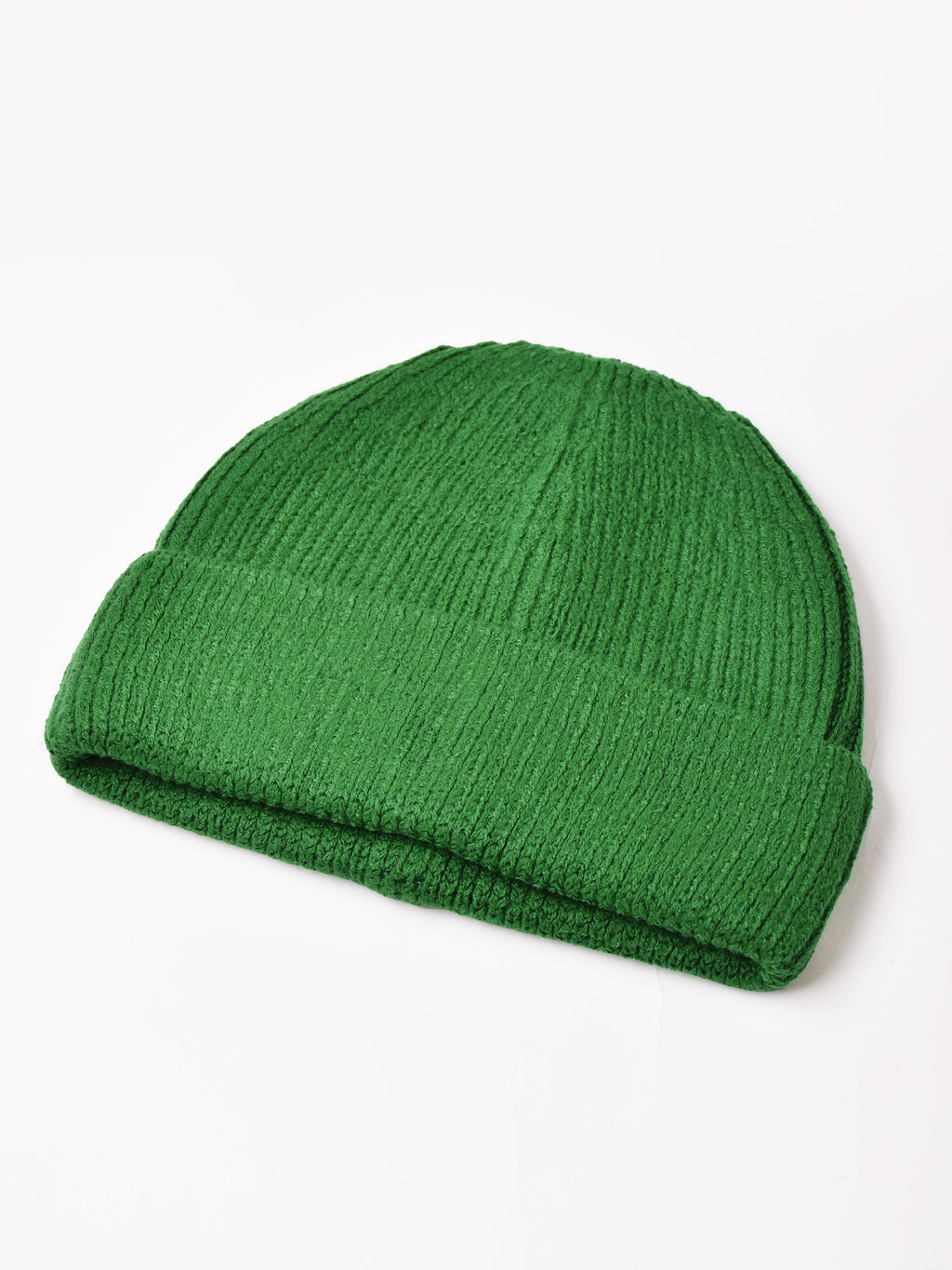 シンプルな無地のニットキャップ。リブニット生地で使い勝手の良い一点です。
