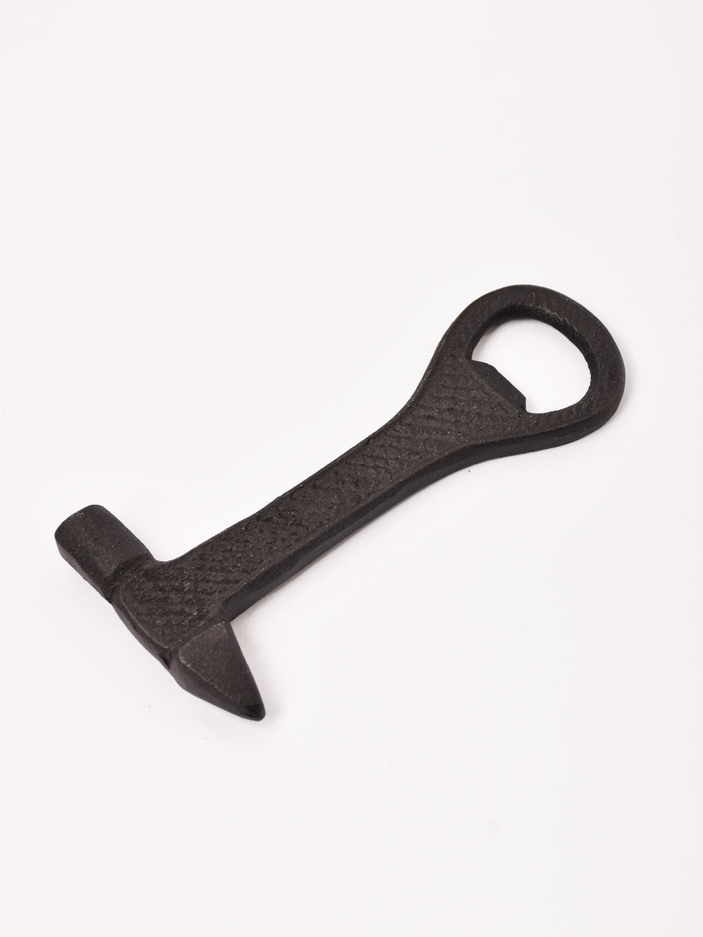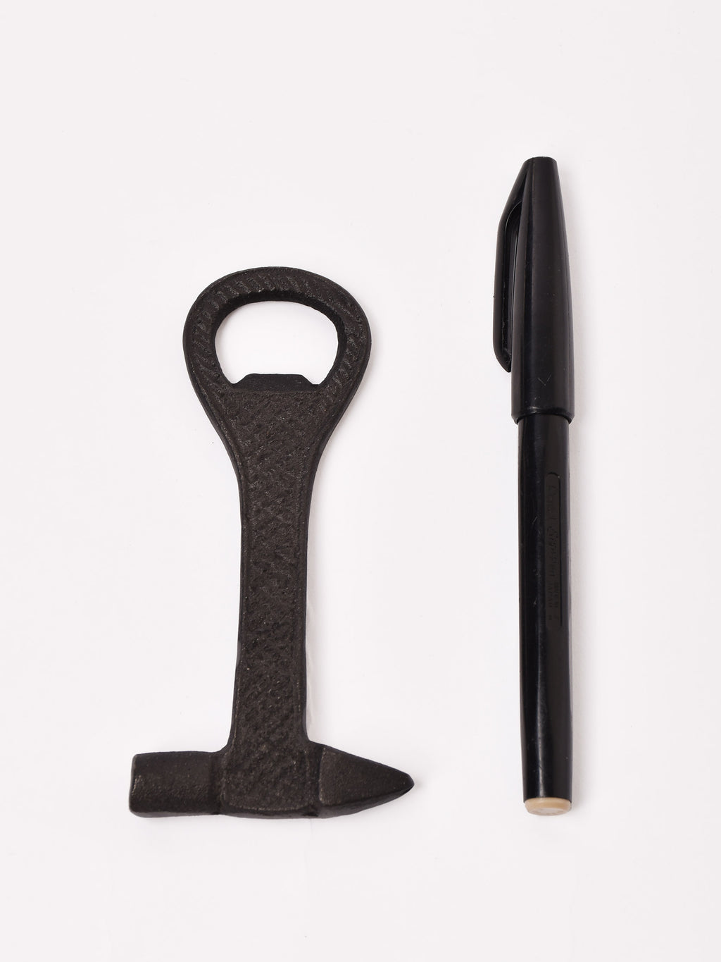 黒鉄製のハンマー型ボトルオープナー。アンティークな雰囲気が魅力的な一点です。チェーンなどをつければ、おしゃれなキーホルダーに早替わり。