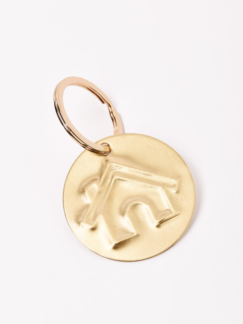 丸いプレートに家のモチーフが刻まれたキーホルダー。バッグや服に取り付けてちょっとしたアクセントに。