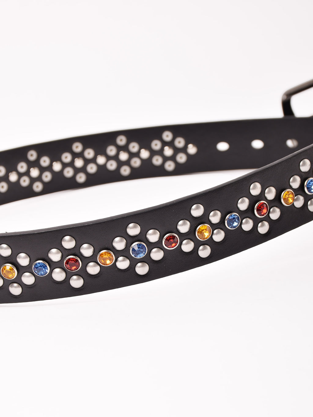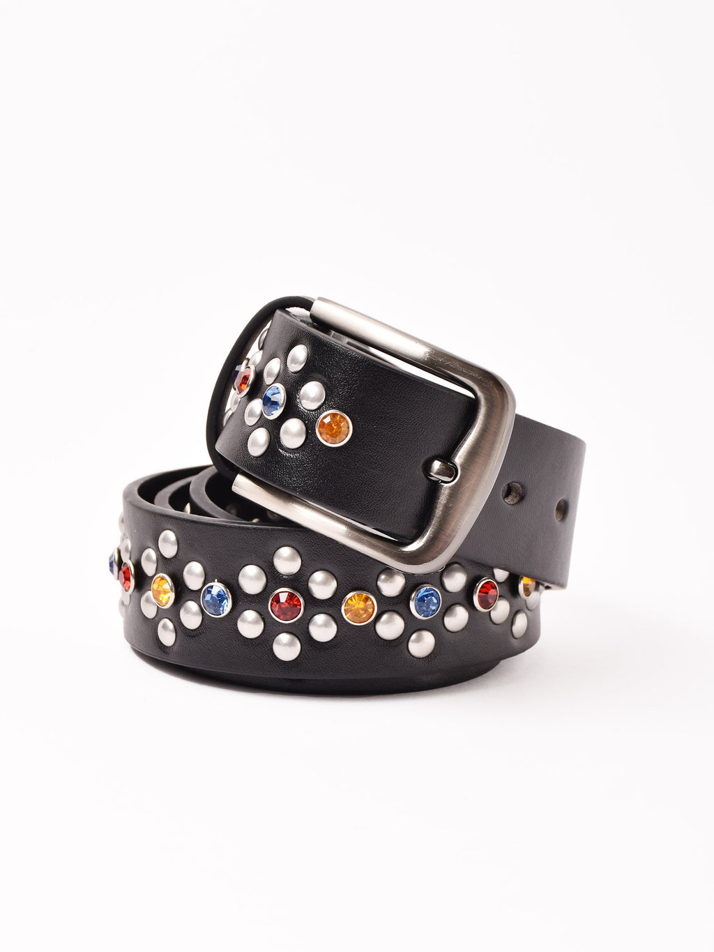 カラフルなスタッズ装飾をあしらった、ヴィンテージライクなベルト。エッジの効いたスタイリングに仕上げてくれる一点です。
