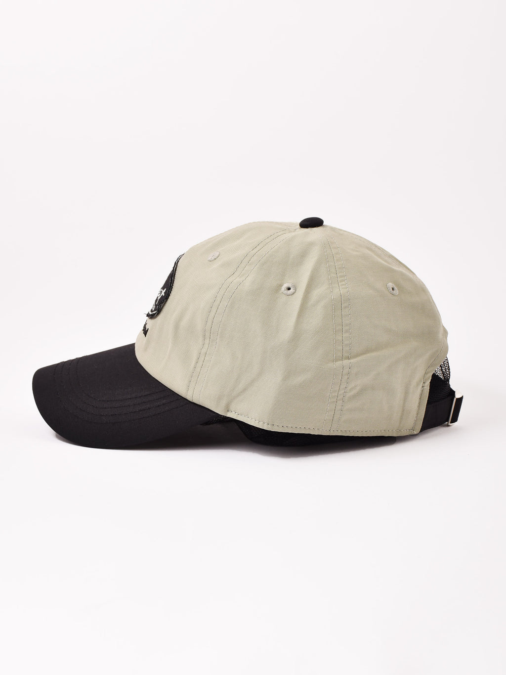 カジュアルなワッペン刺繍入りのポリキャップ。オールシーズンで被れる一点です。