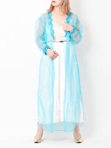 鮮やかなブルーボディに繊細なレースをあしらったランジェリーガウン。かなり薄手のナイロン素材を使ったシースルーアイテムで、様々なコーディネートにオンして楽しめます。