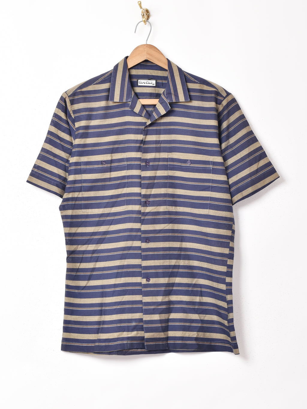 渋めの合わせやすいカラーリングがポイントの半袖開襟シャツ。おそらくコットン生地で、かなり薄手で爽やかな一着です。