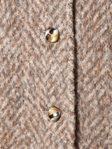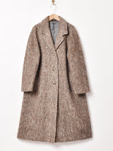 ナチュラルなカラーリングと、毛足長めの生地感がマッチしたコート。すっぽりと身体を包んでくれるロング丈で、防寒性も◎。ふんわり厚手の一着です。