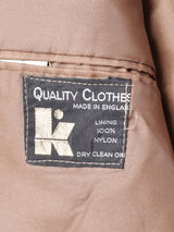 落ち着いたブラウンがクラシカルな雰囲気満点の一着。ナイロンの裏地付きで、しっかりとハリのある生地感です。